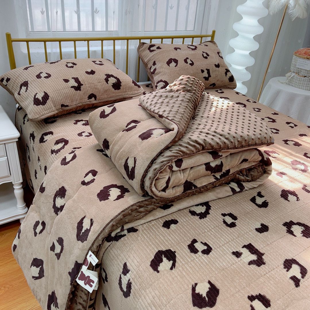 商品名称:暖居 2025新款加厚牛奶绒豆豆被床盖四件套跑量款 经典豹纹