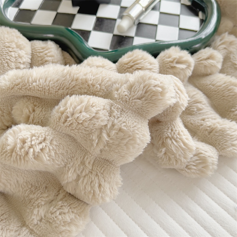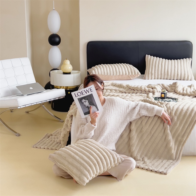 玖琳家纺 2025新款多功能抽条兔兔毛绒毯 卡其