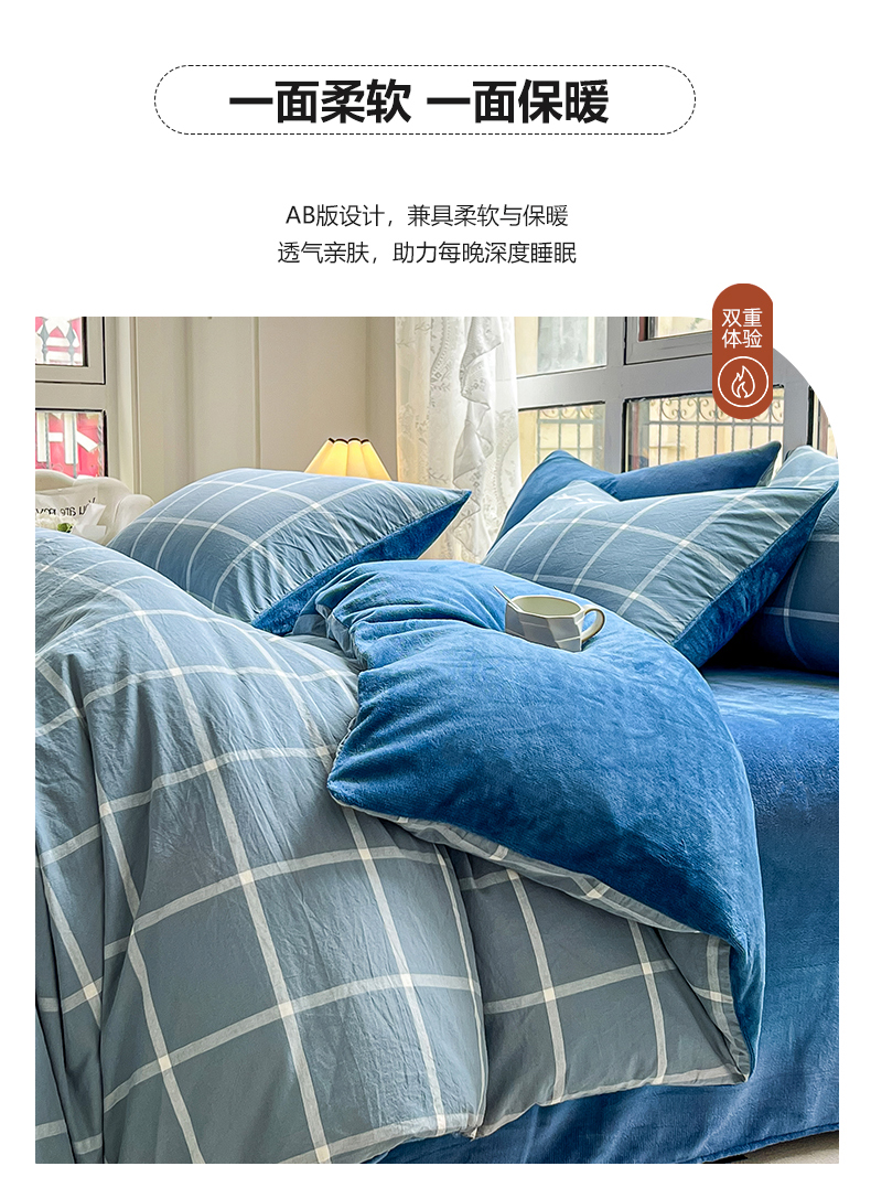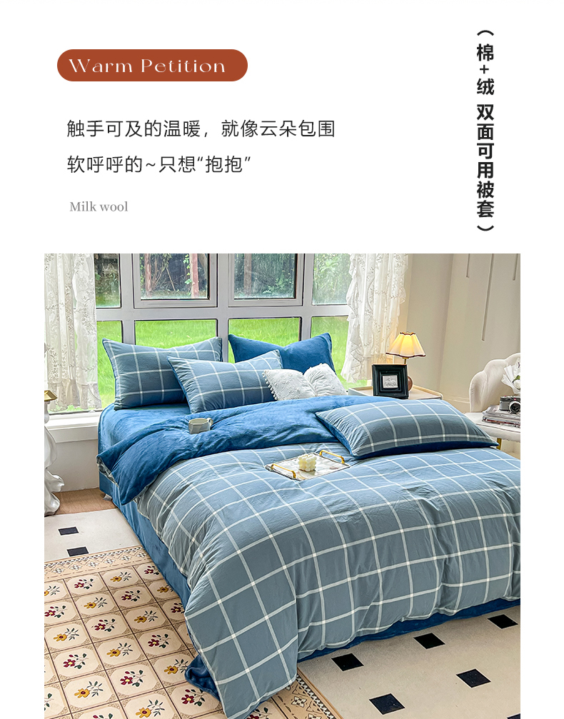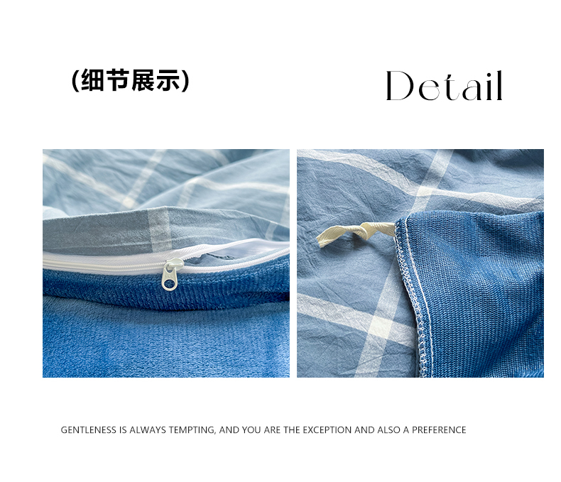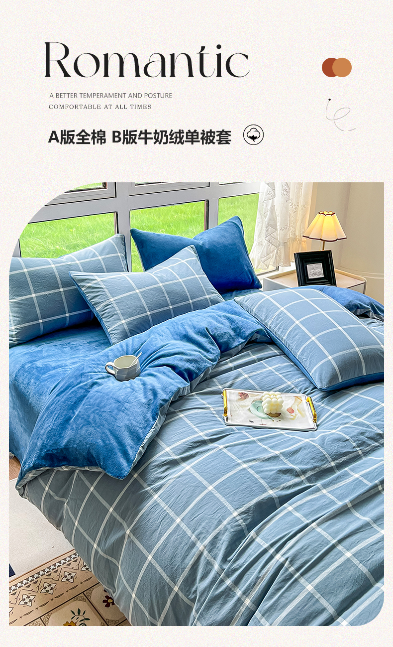 • 91家纺网 家纺一手货源 找家纺 柠萌家居 2025新款无印良品风双拼全棉色织水洗棉加牛奶绒单品被套简约风全棉拼牛奶绒单被套 棉+绒-海蓝大格