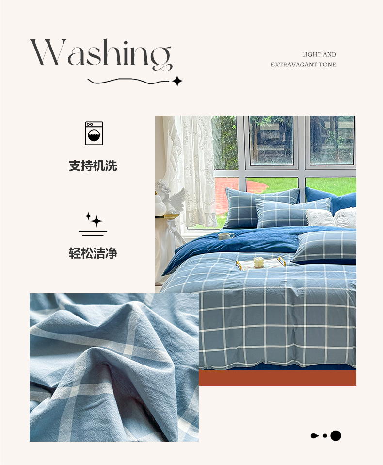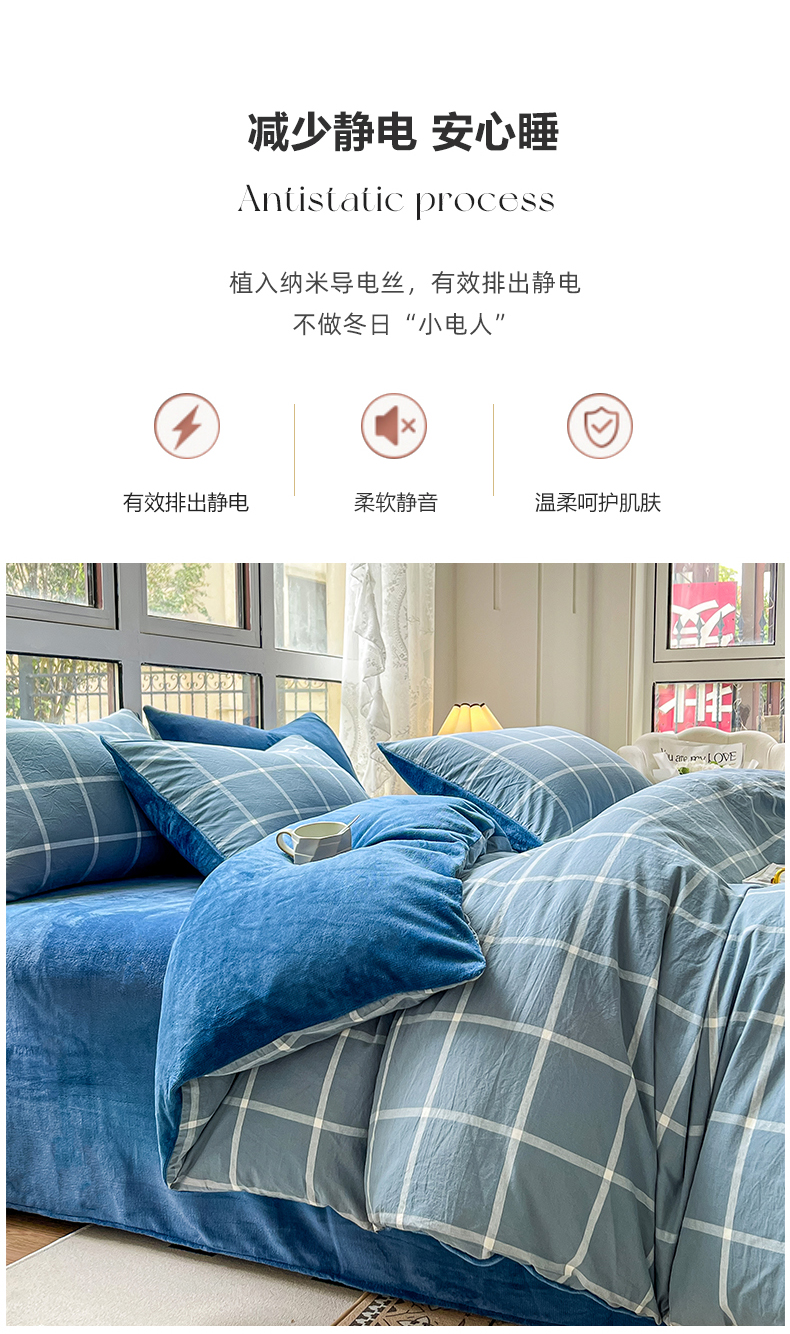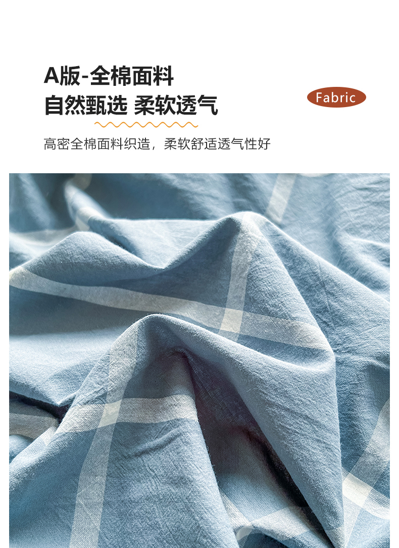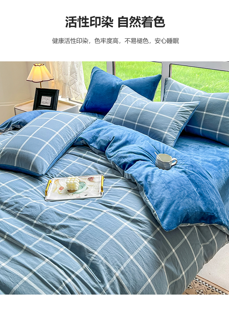 • 91家纺网 家纺一手货源 找家纺 柠萌家居 2025新款无印良品风双拼全棉色织水洗棉加牛奶绒单品被套简约风全棉拼牛奶绒单被套 棉+绒-海蓝大格