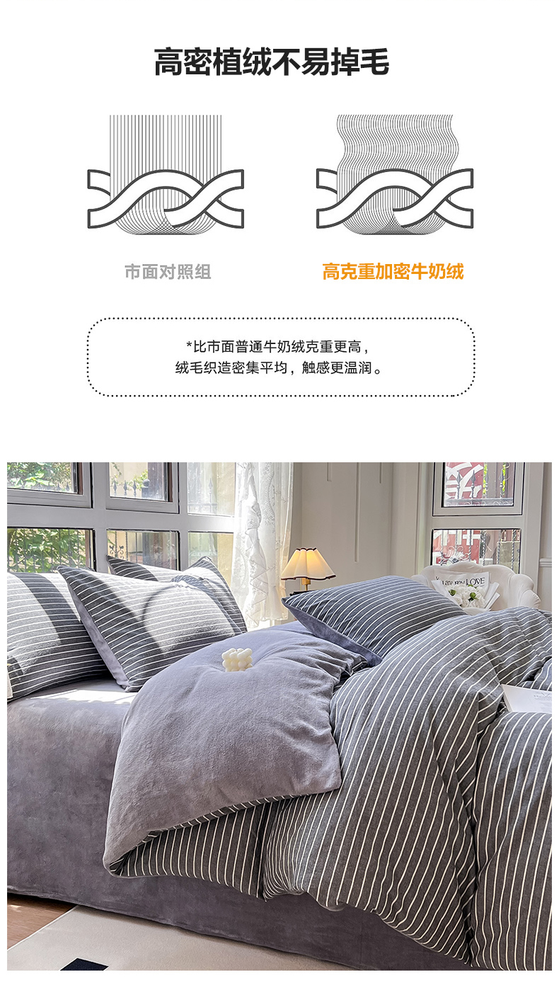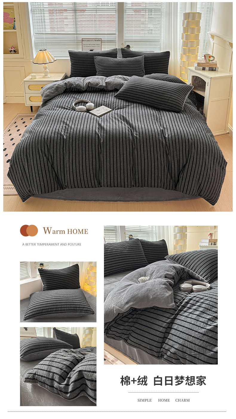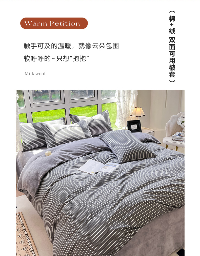 • 91家纺网 家纺一手货源 找家纺 柠萌家居 2025新款无印良品风双拼全棉色织水洗棉加牛奶绒单品被套简约风全棉拼牛奶绒单被套 棉+绒-中条纹深灰