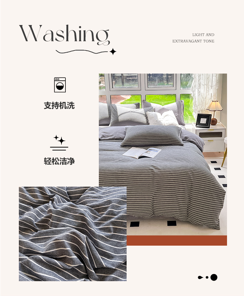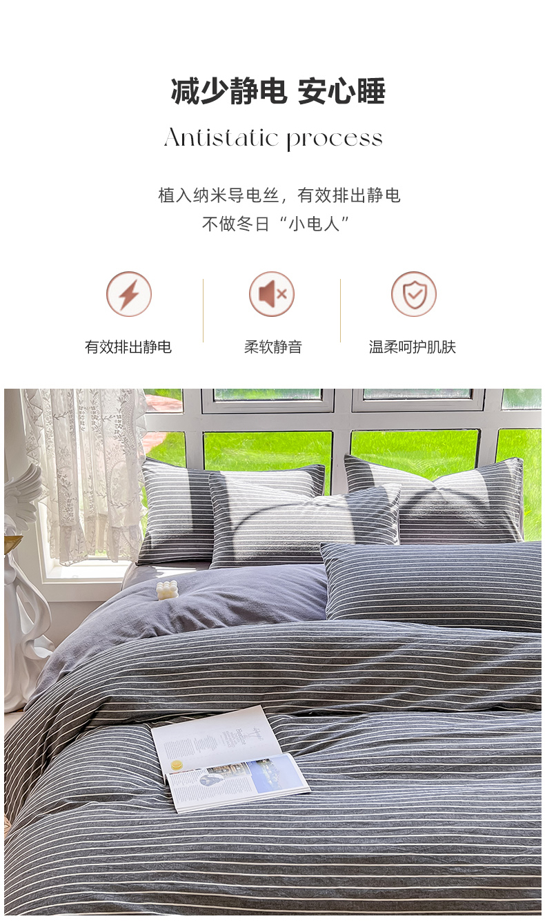 (总)柠萌家居 2026新款色织水洗棉四件套单被套,粉极细条,粉紫条,黄咖条,灰极细条,蓝咖条,绿极细条,绿紫条,米极细条,驼红条