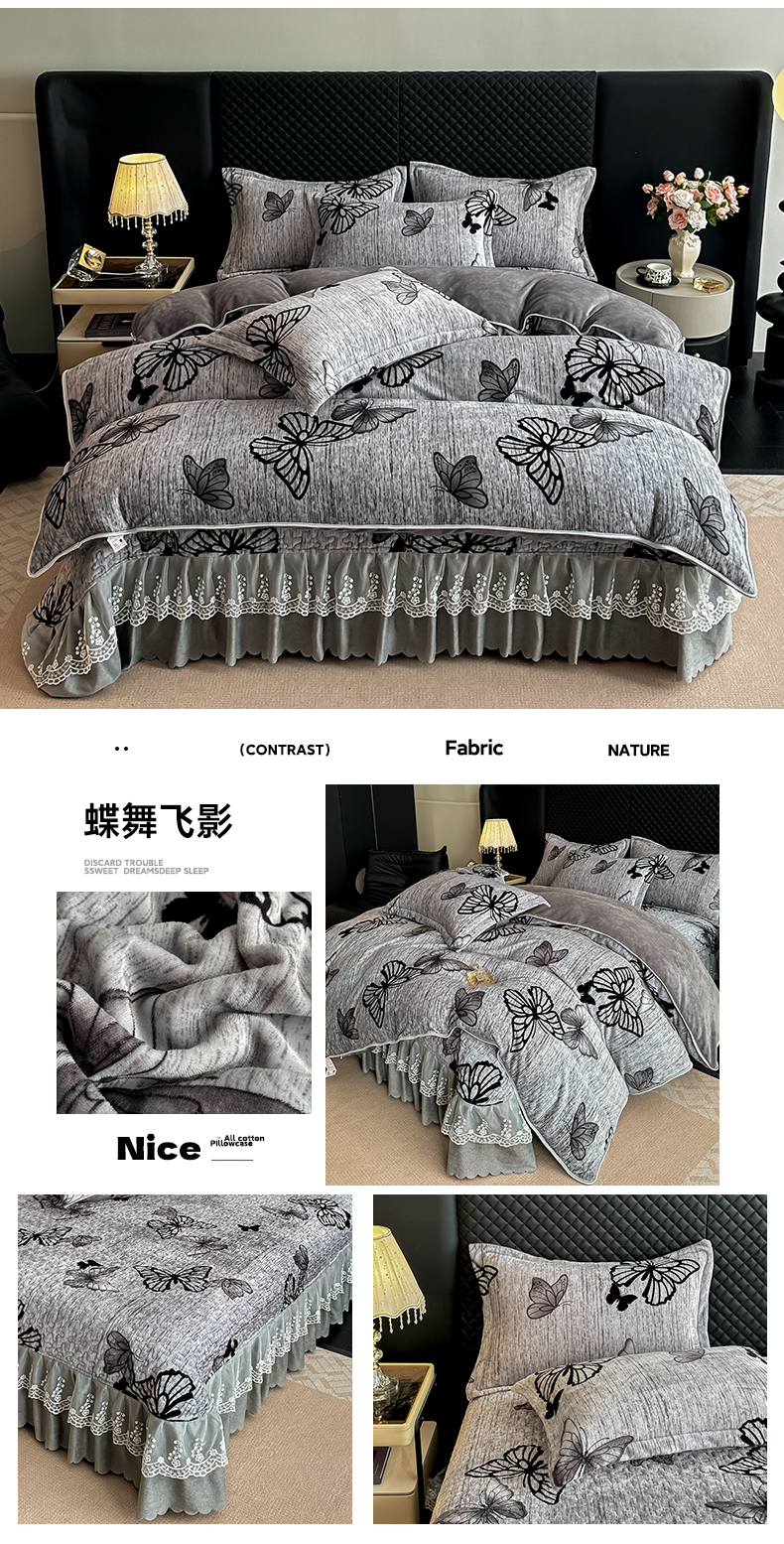 商品名称:栩裕纺织 2025新款加厚牛奶绒床盖四件套 蝶舞飞影