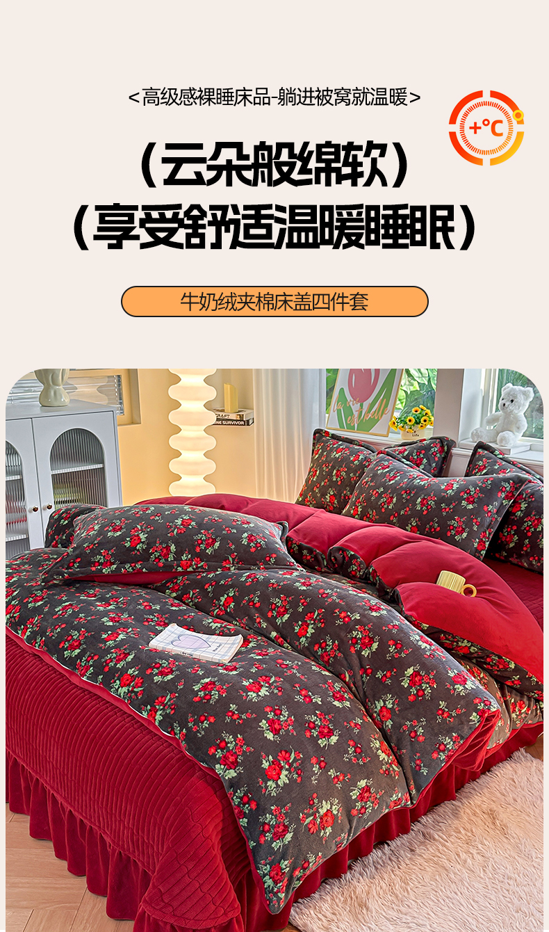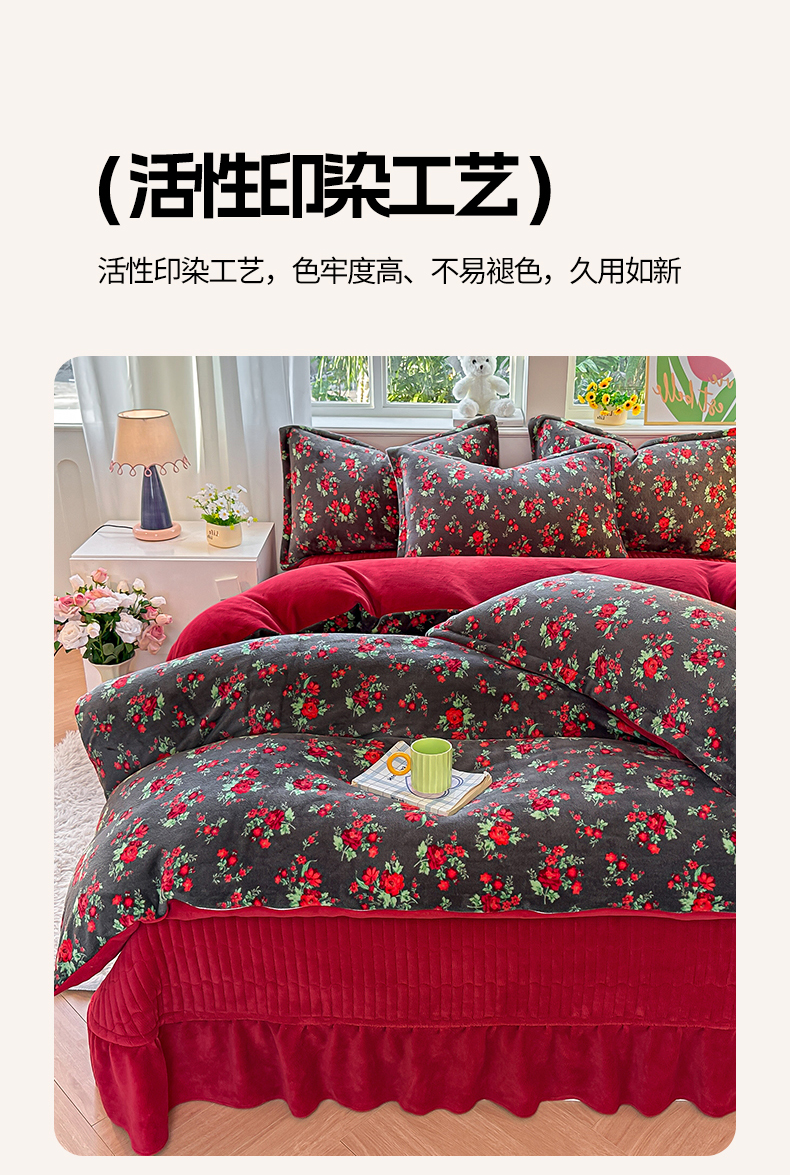 (总)梓之赫 2025新款保暖舒适牛奶绒印花夹棉床盖四件套,爱恋,豹纹,花盏-白,花盏-黑,眷恋,如约,心愿,约定