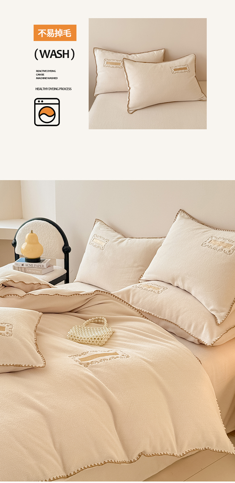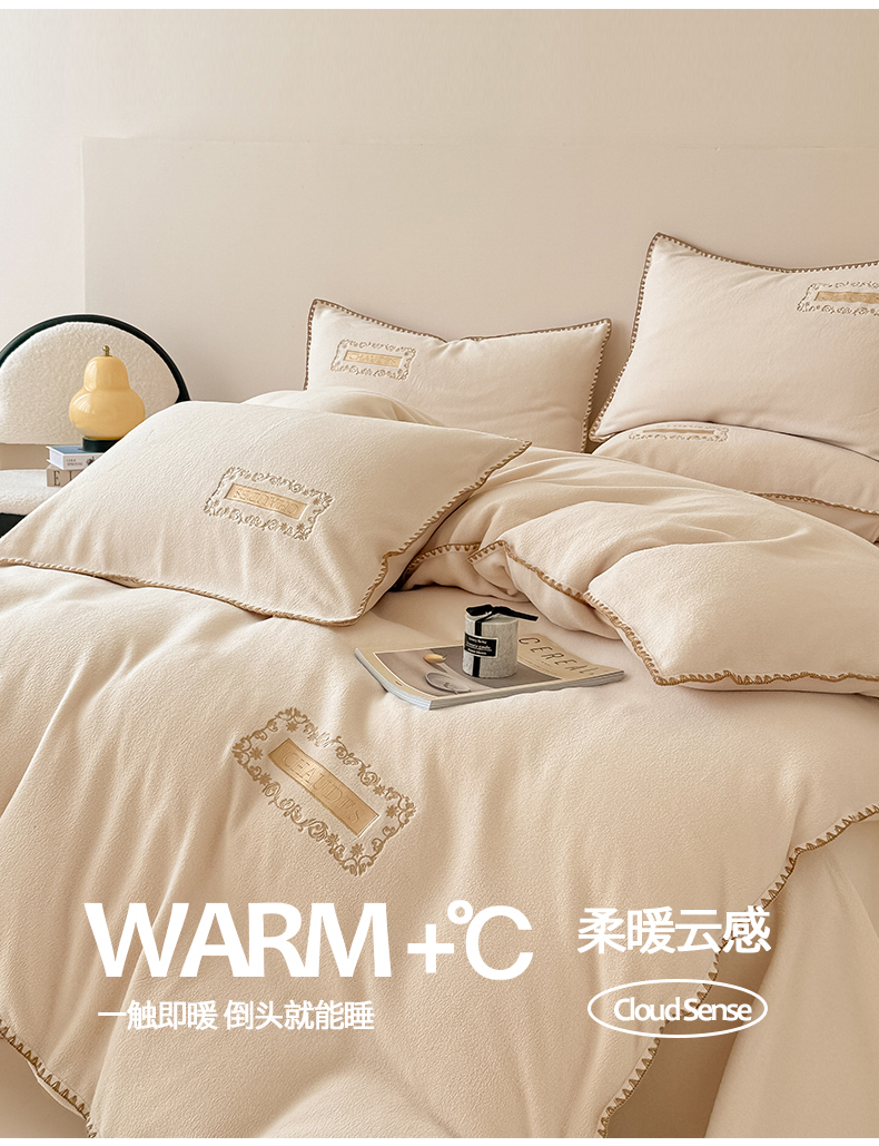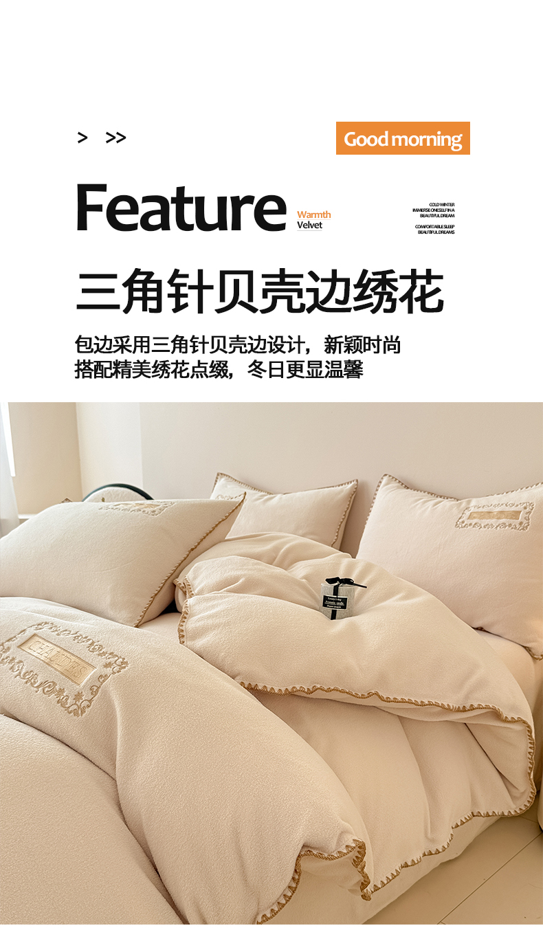 当前位置: 91家纺网 > 商品网购 > 床品套件 > 四件套 > 其它四件套 > 典曼家纺 2025新款A类贝壳绣纯色海獭绒四件套 杏仁白