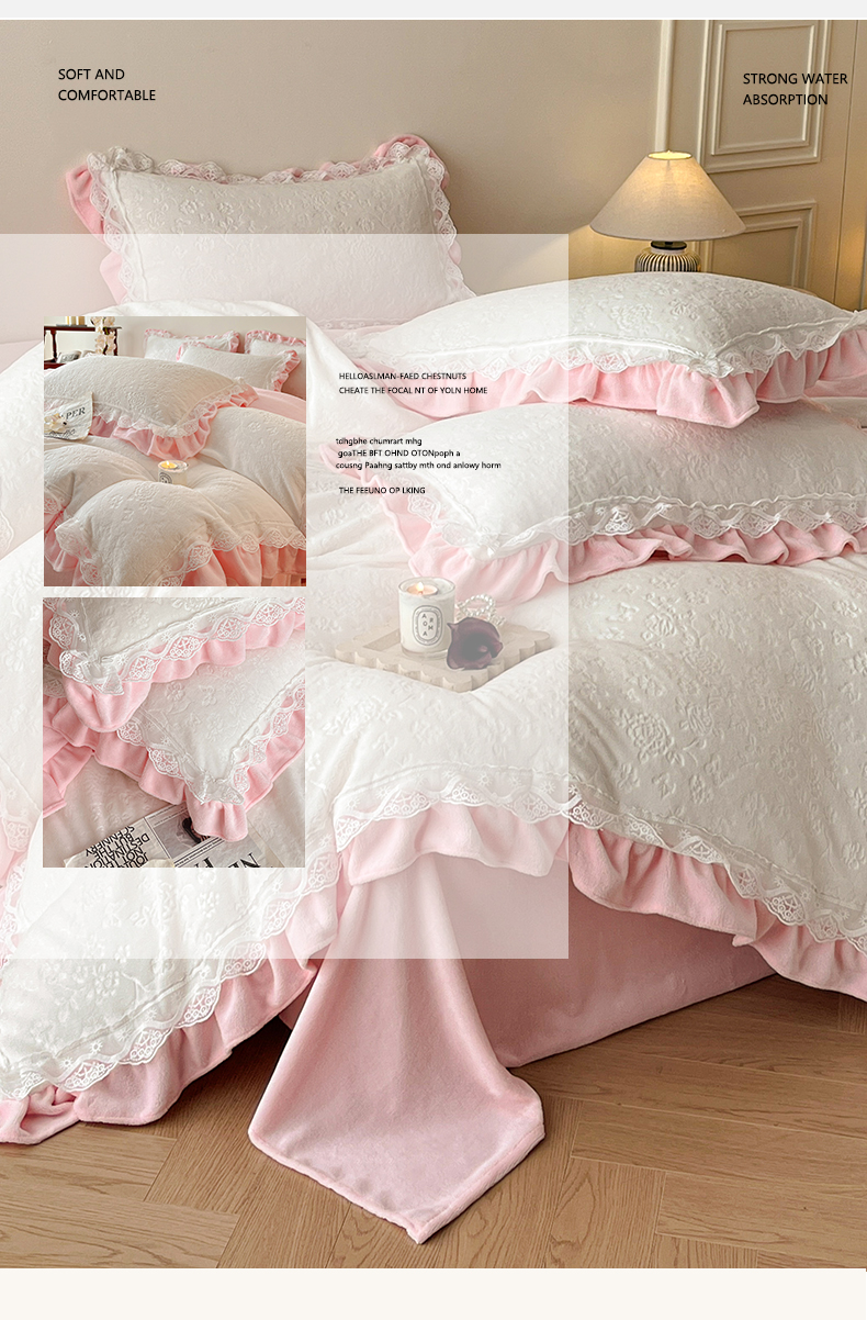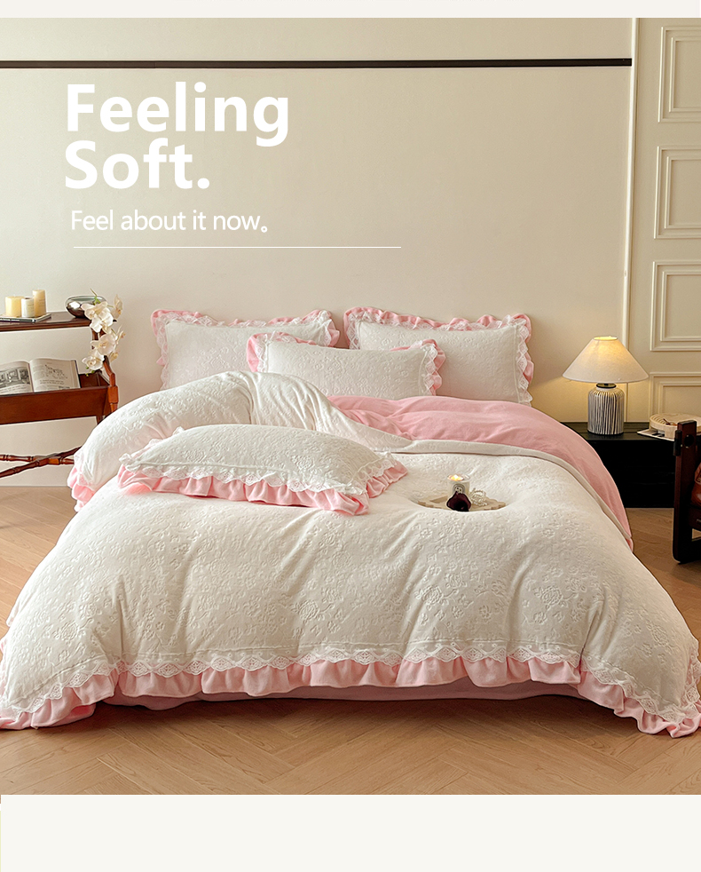 (总)逸尚阁 2025新款立体雕花牛奶绒花边款四件套--塔丽娜系列,塔丽娜-奶白粉,塔丽娜-玫瑰粉,塔丽娜-奶黄色,塔丽娜-浅玉色,塔丽娜-天空蓝