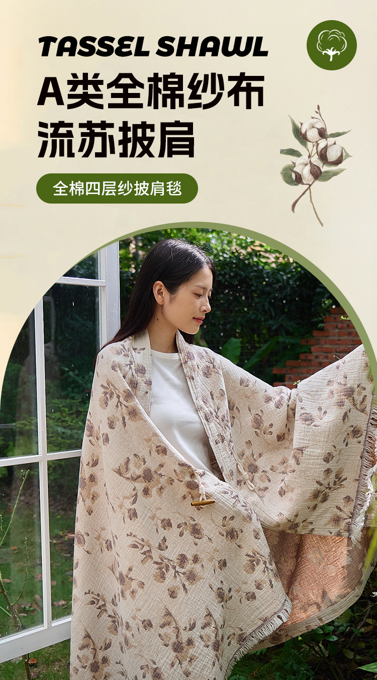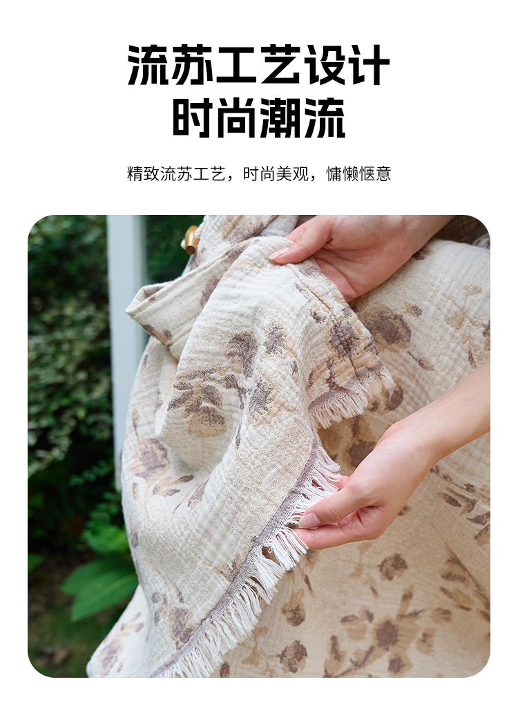 商品名称:沐瑟家纺 2025新款全棉流苏纱布披肩毯空调毯多功能午休毯牛角披肩毯民宿风 白芷