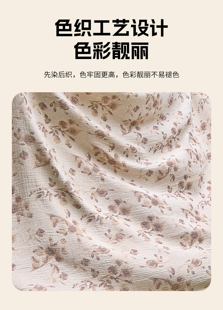 (总)沐瑟家纺 2025新款简约风多功能纱布盖毯纱布毯子毛巾被床盖沙发巾单毯枕巾枕套三件套,H本色,H橙色,H咖色,大马士革本色
