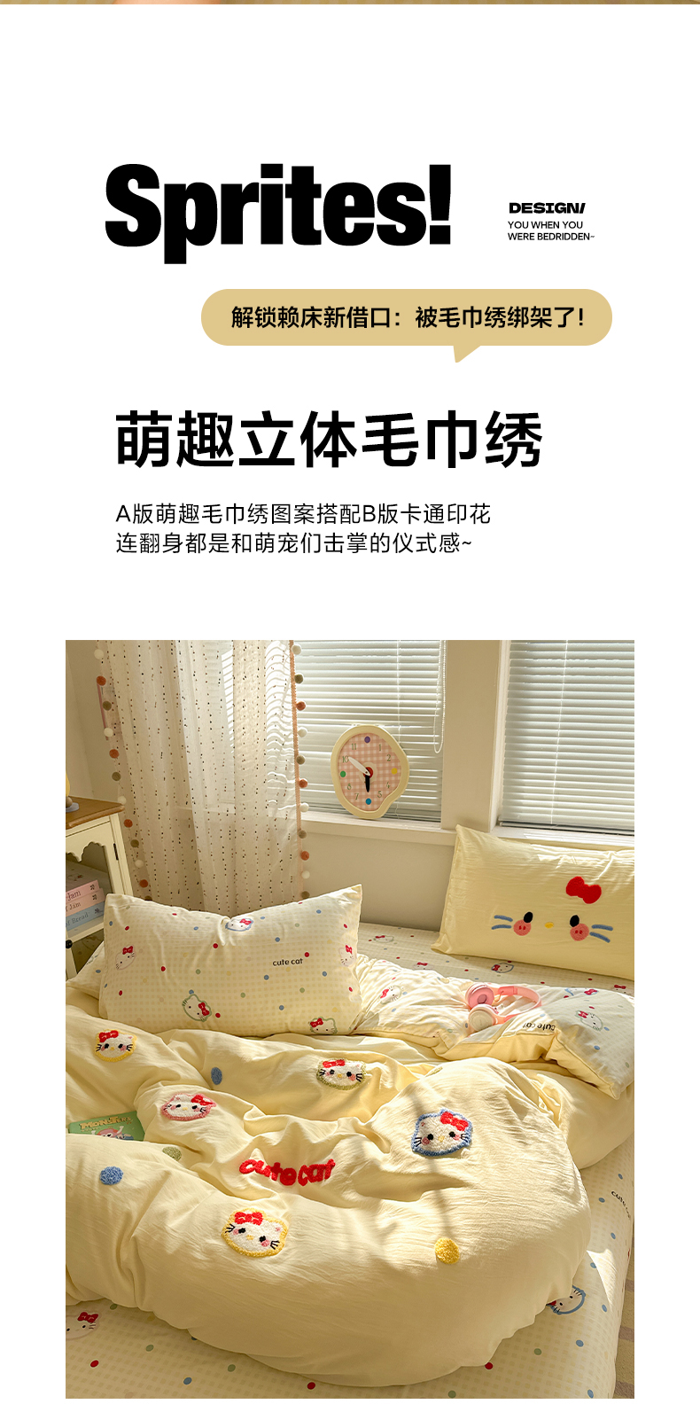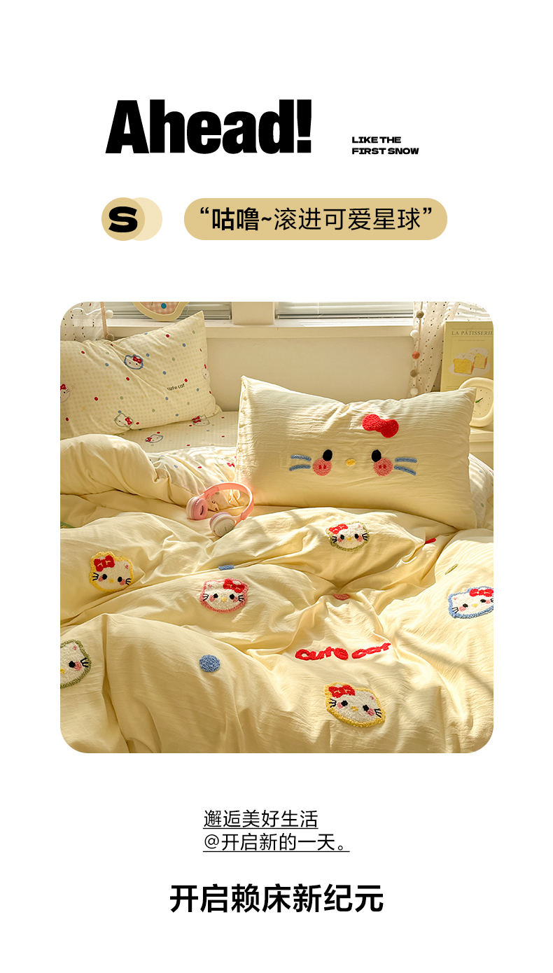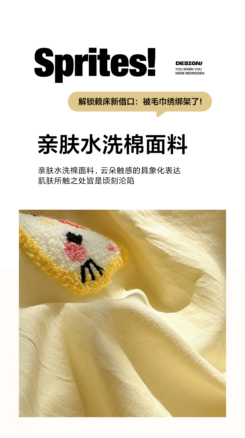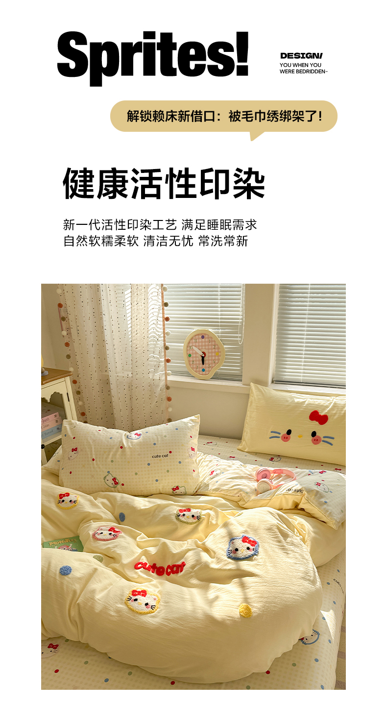当前位置: 91家纺网 > 商品网购 > 床品套件 > 四件套 > 毛巾绣四件套 > 彩韵家纺 2025新款水洗棉毛巾绣可爱猫咪系列 晚安喵-黄