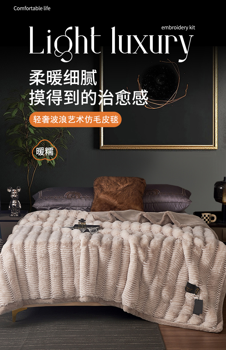 (总) 2025新款加厚10斤仿大兔毛艺术毯轻奢拉舍尔毛毯子水貂绒午睡盖毯被子婚庆盖毯,波浪-驼色,波浪-粉红,波浪-红灰,波浪-灰色,波浪-酒红,波浪-卡绿,20# 红皮包,波浪-抹绿
