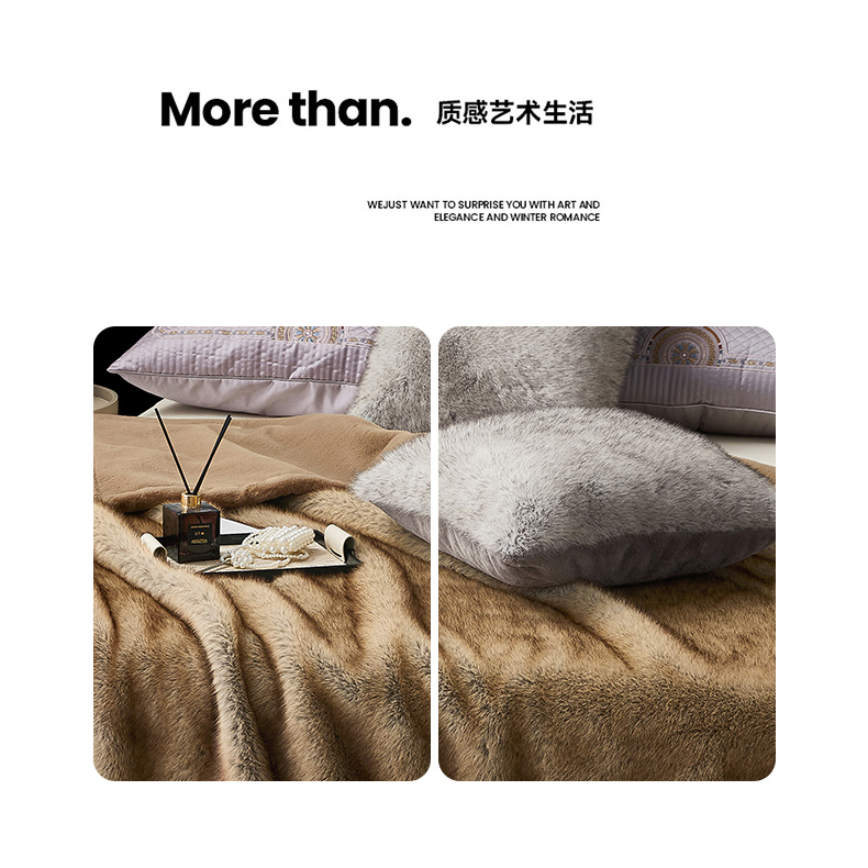 商品名称: 2025冬季新款床上用野兽派毛毯被子午休毯结婚用双人婚庆拉舍尔毛毯子 魅影-棕咖