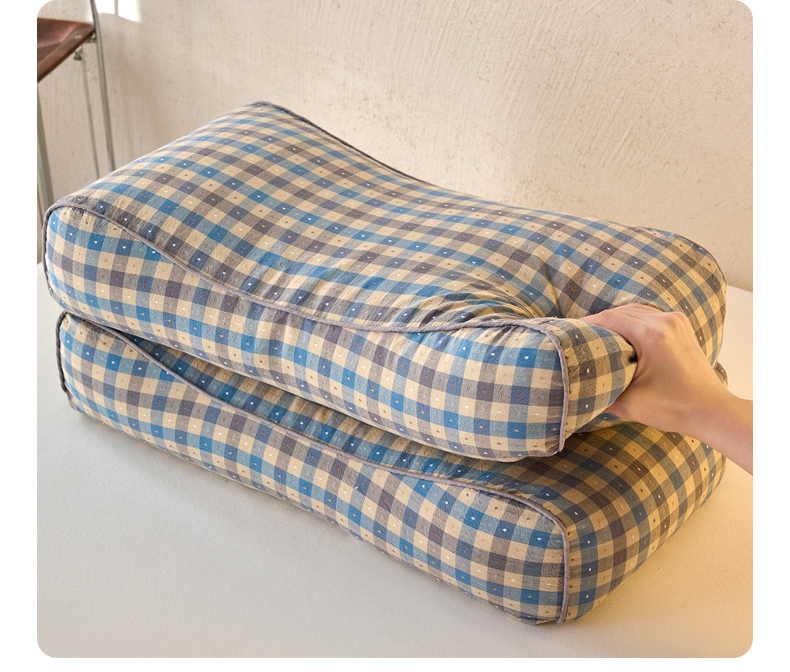 商品名称:明星枕业 2025新款全棉水洗棉提花荞麦枕头颈椎枕成人护颈助眠枕单人枕芯内胆可拆洗 波浪枕-蓝色