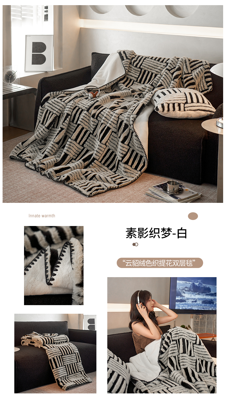 (总)宜代光年 2025新款云貂绒色织提花双层毯-场景二