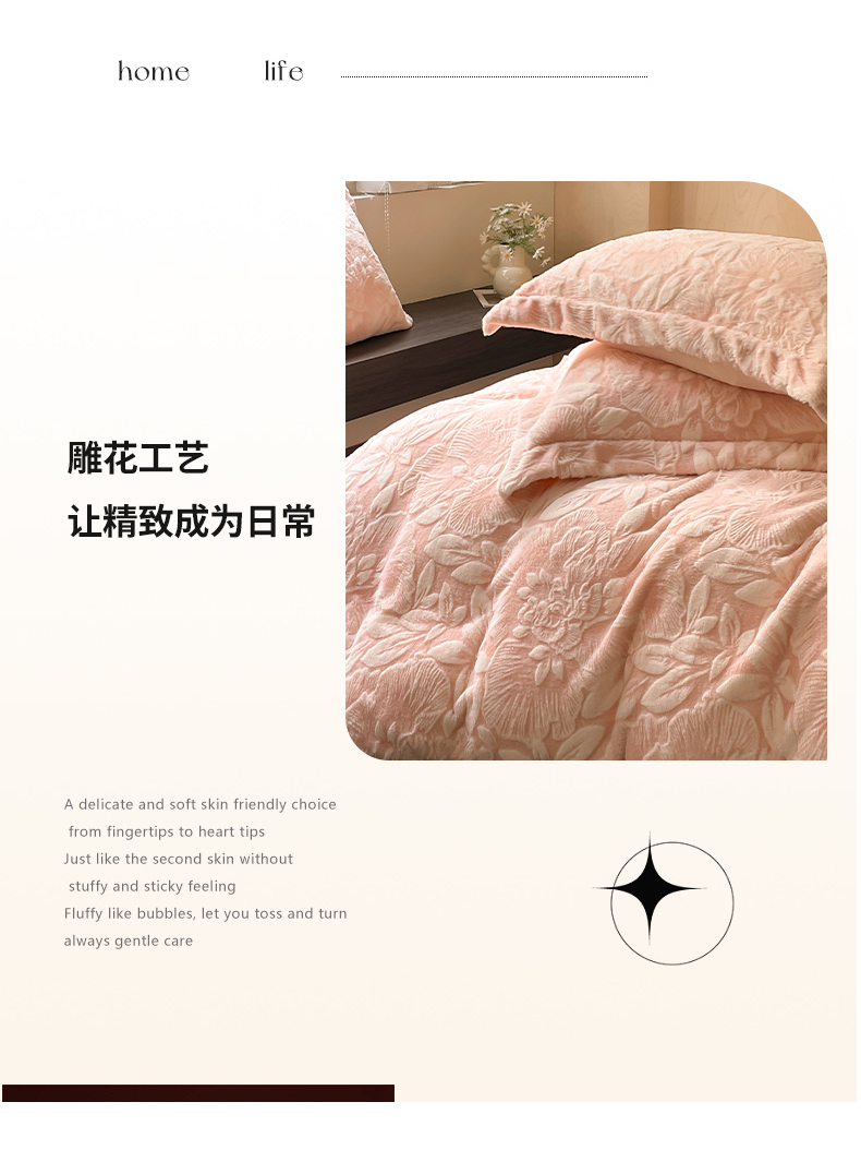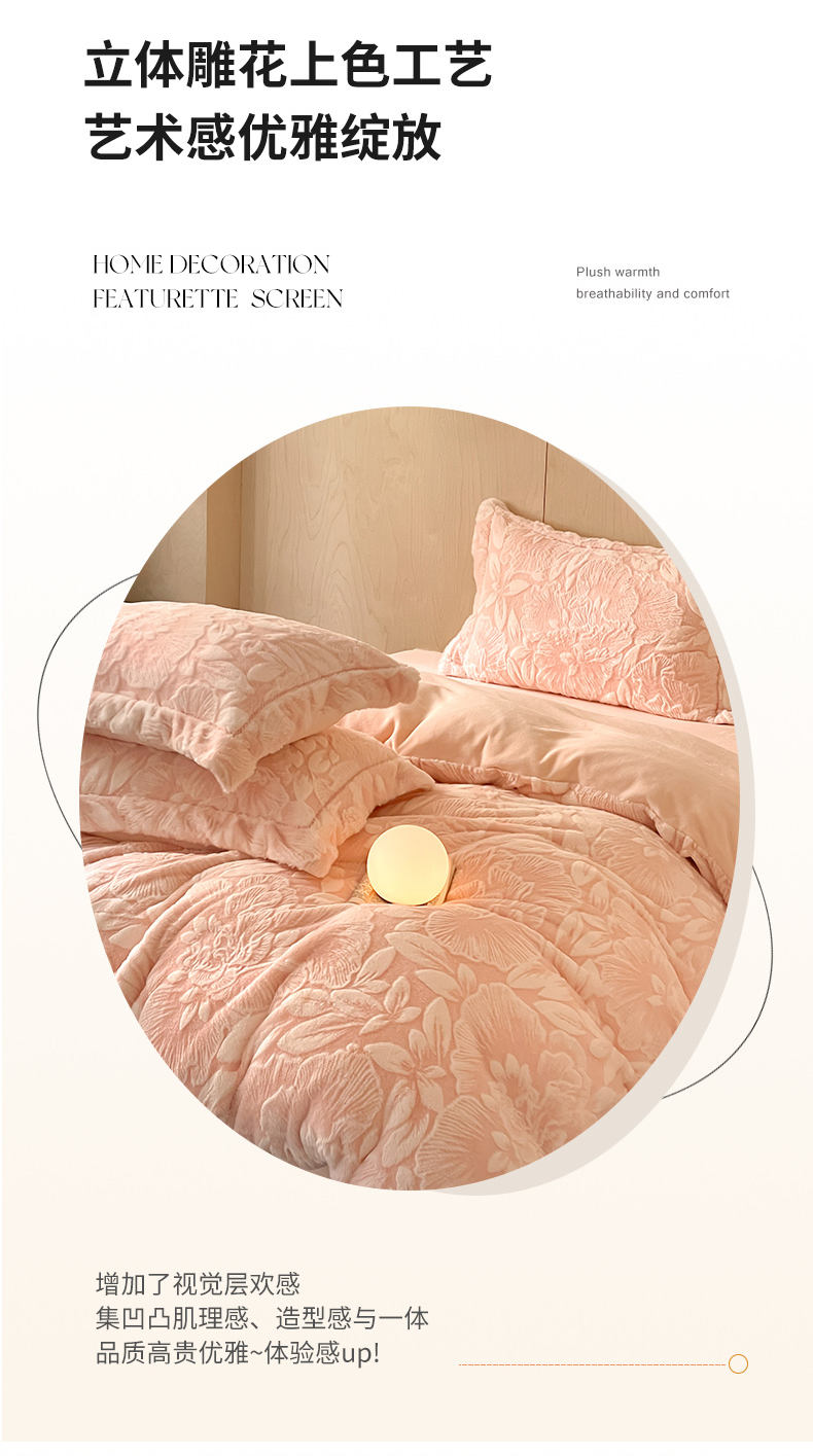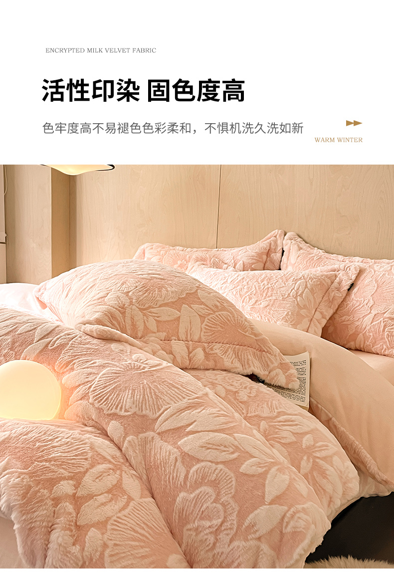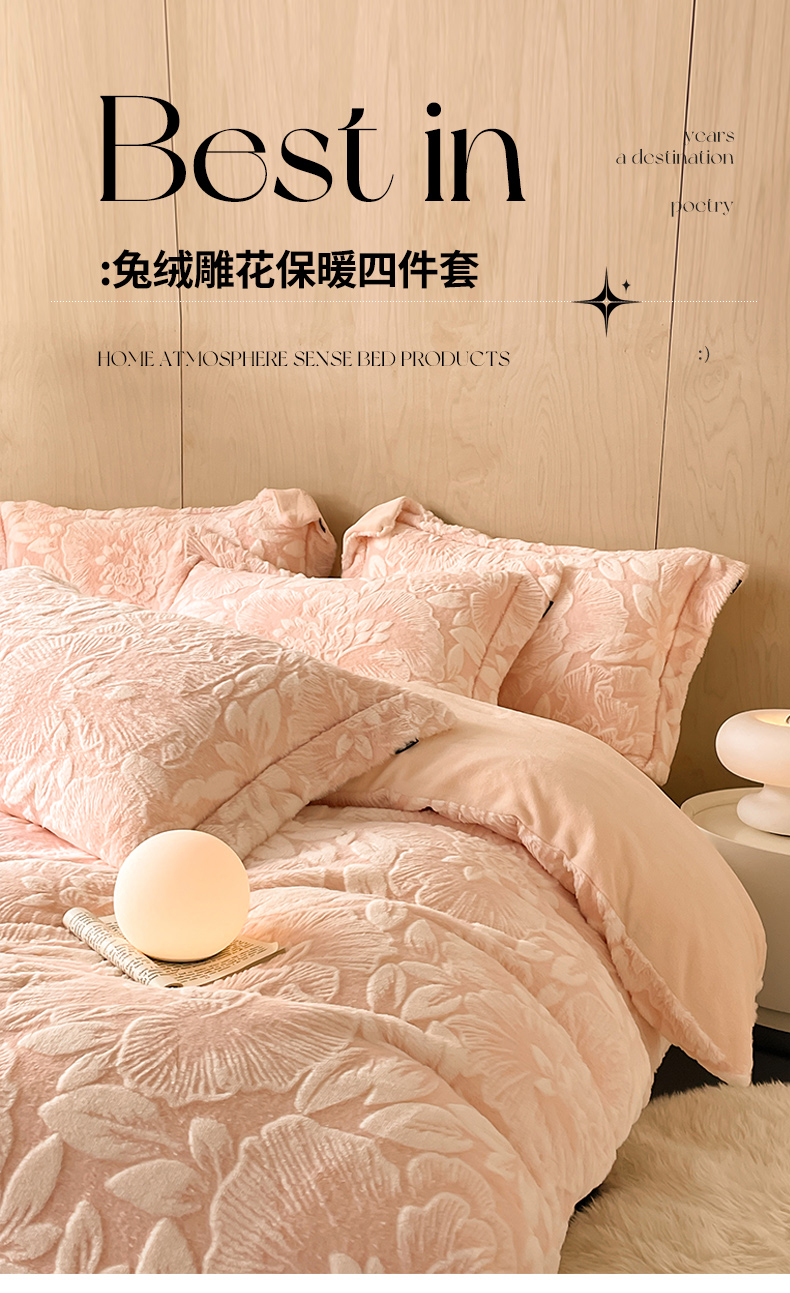 商品名称:宜代光年 2025新款兔绒色烂雕花保暖四件套 芳华-玉