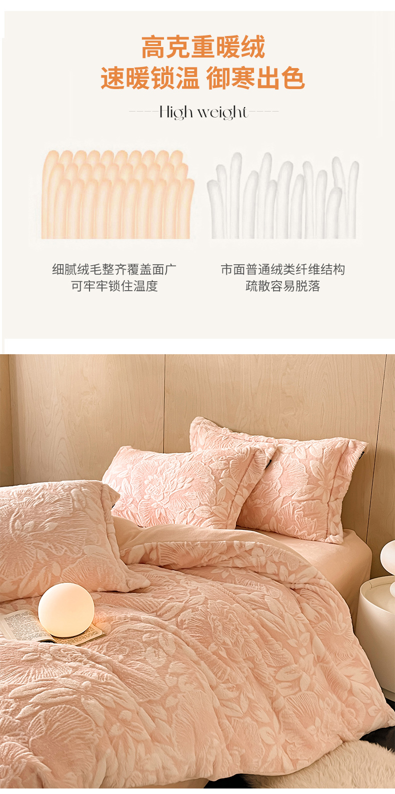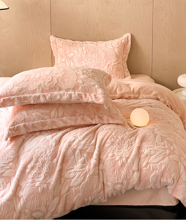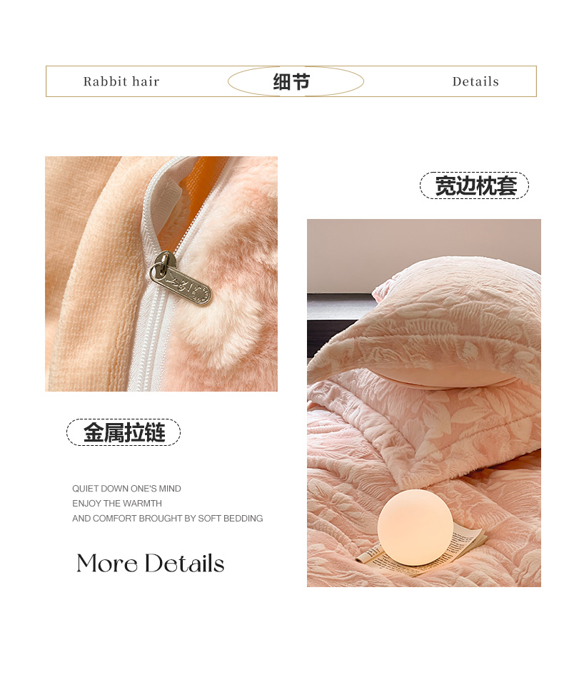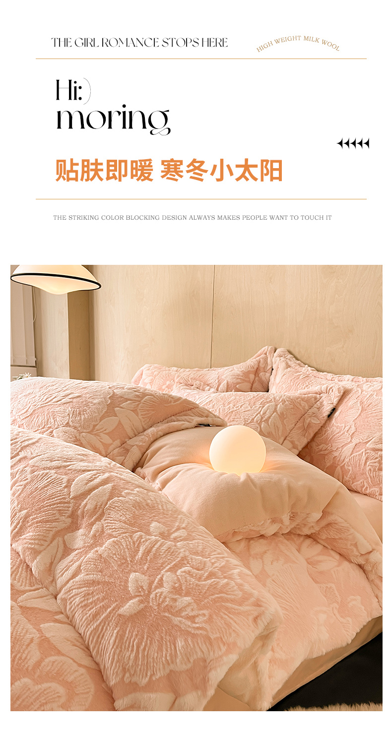 商品名称:宜代光年 2025新款兔绒色烂雕花保暖四件套 芳华-玉