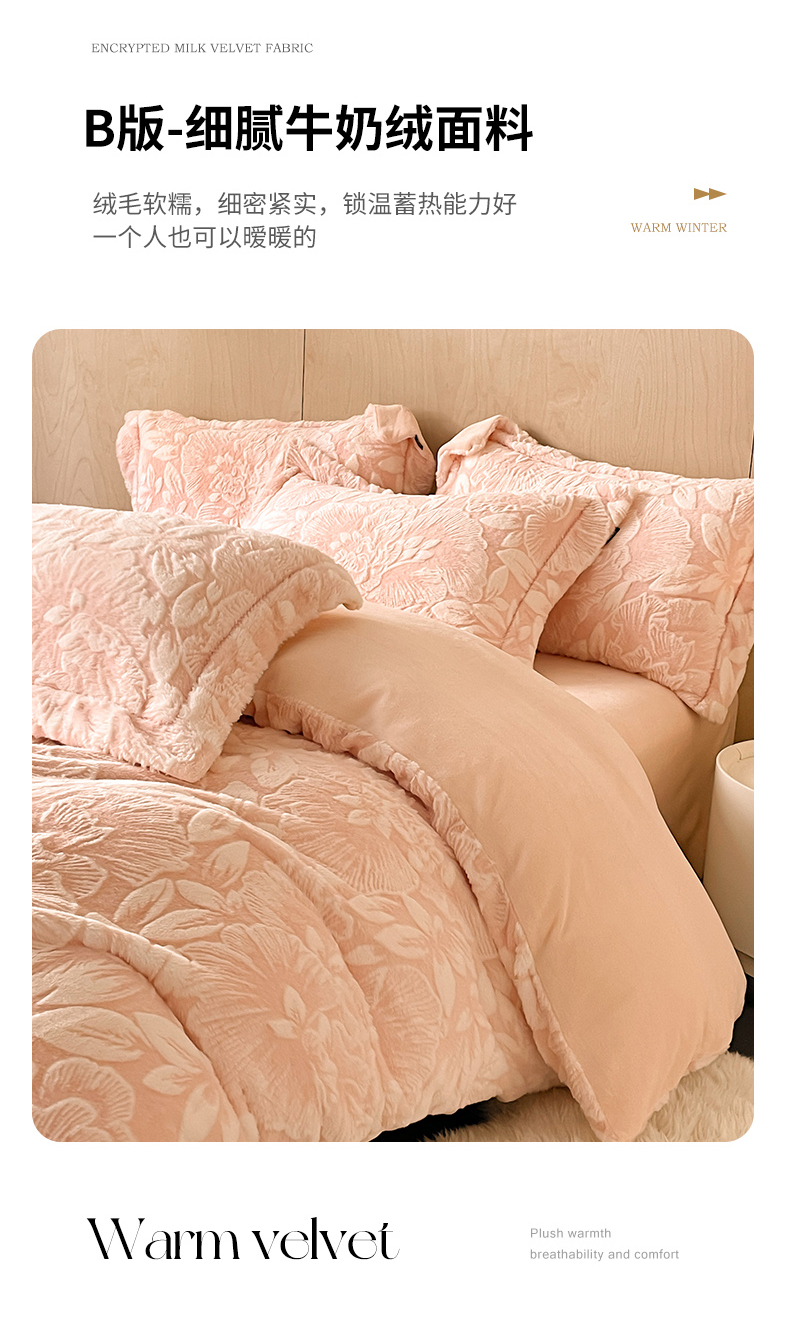 (总)宜代光年 2024新款小米貂牛奶绒雕花四件套,繁花似锦-咖,繁花似锦-灰,繁花似锦-粉,丛林-粉,丛林-咖,繁花似锦-绿,花丛小兔-粉,魔法森林-粉,叶曼-绿