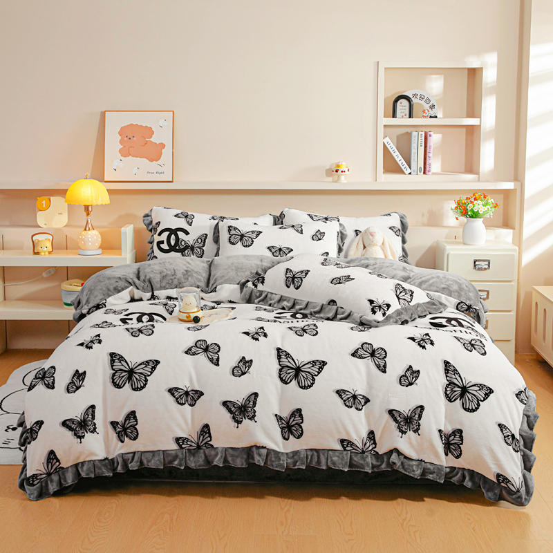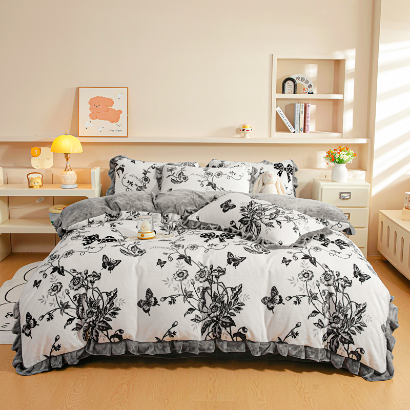 商品名称:绒宴家纺 2025新款印花小清新牛奶绒花边款四件套 似水流年【花边款】