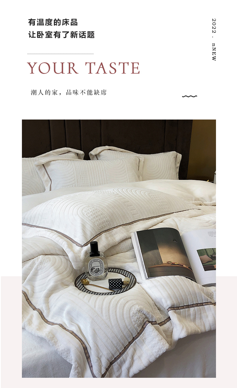 (总)宜代光年 2025新款德绒260克牛奶绒织带系列四件套