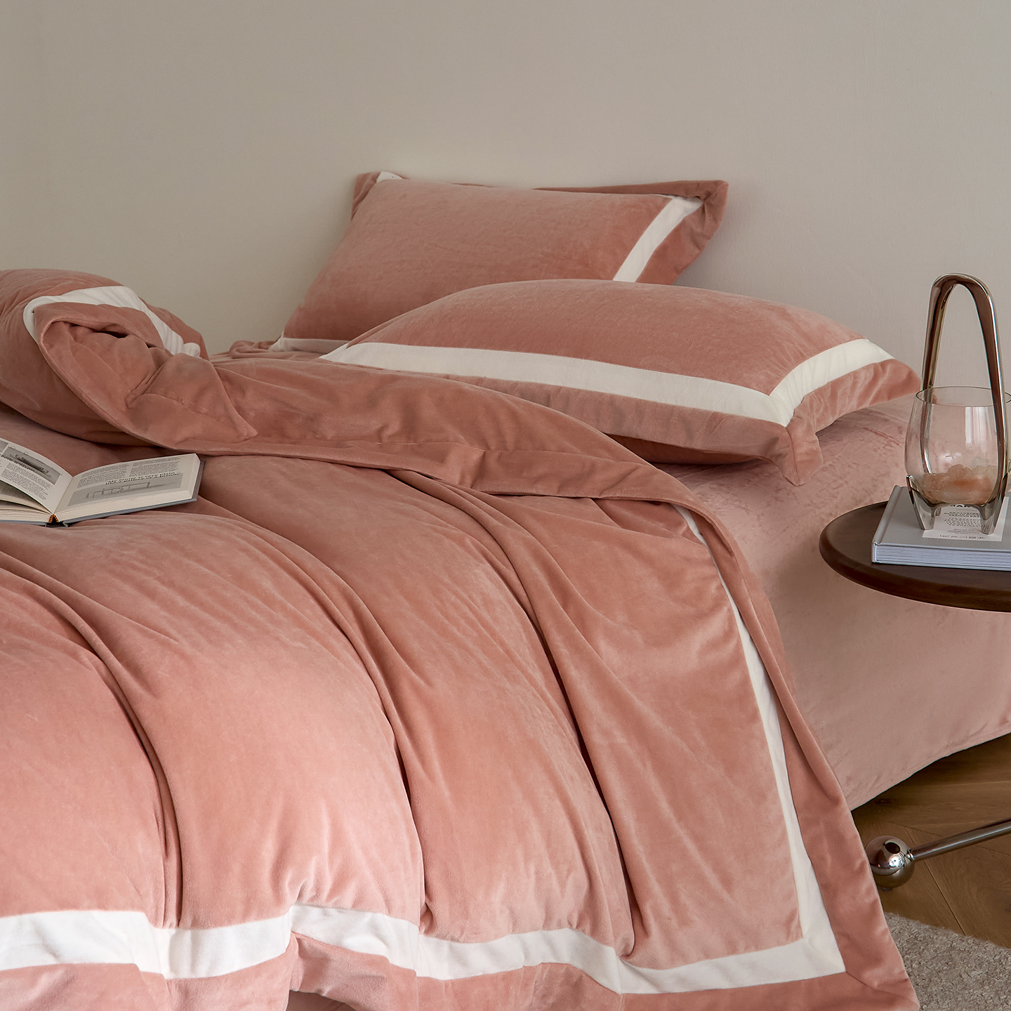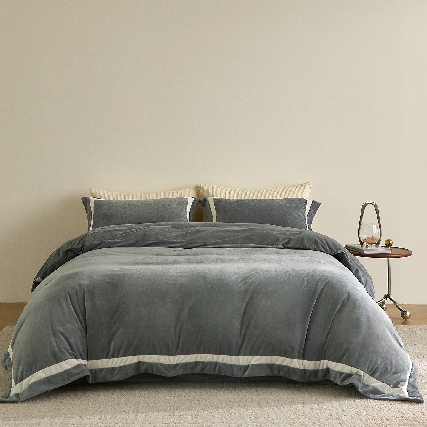 商品名称:ONE TWO ONE 121 2025新款轻奢新法式德芙绒宝宝绒婴儿绒短毛绒牛奶绒四件套床单被套【繁华】【提供买家秀】【会员-20】 平台控价券后不得低于318/338元 繁华-草木灰