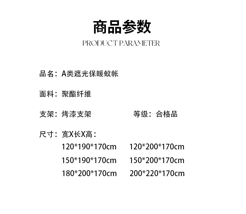 180x200x170cm单纱帐(全底) | ¥110.00 |