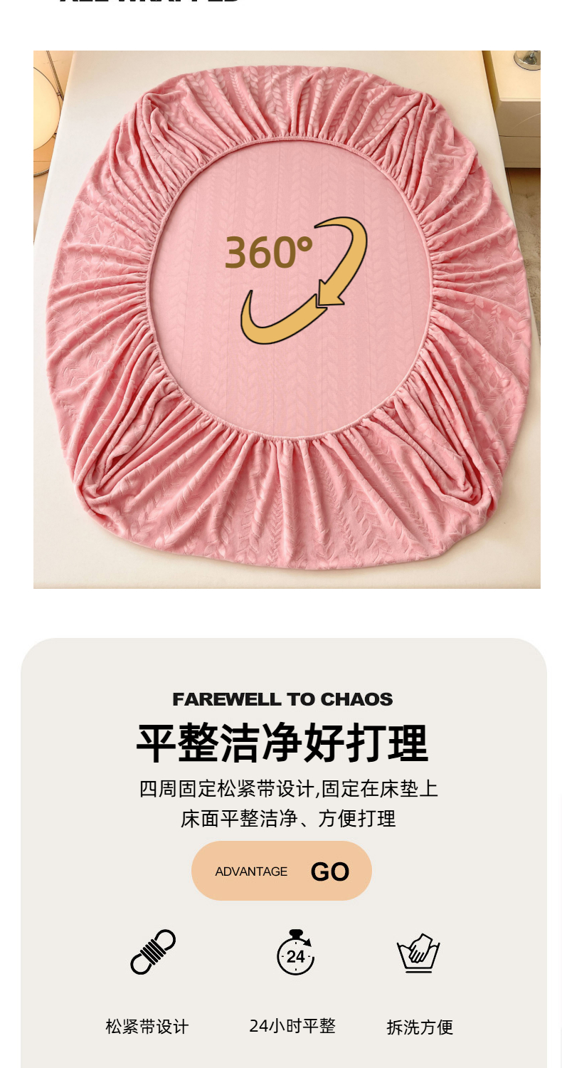 • 91家纺网 家纺一手货源 找家纺 三盛源 2025新款高克重雕花牛奶绒床笠三件套加厚保暖床垫保护套 组合图仅做展示不可下单