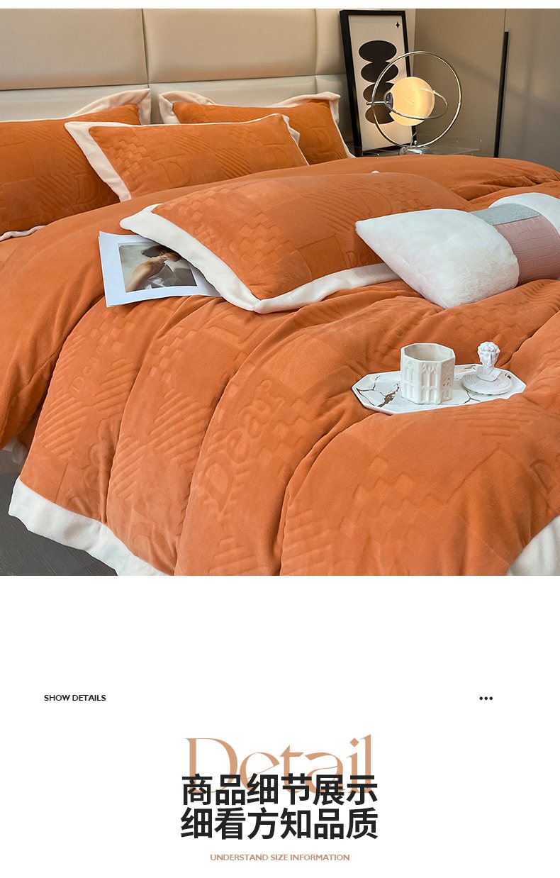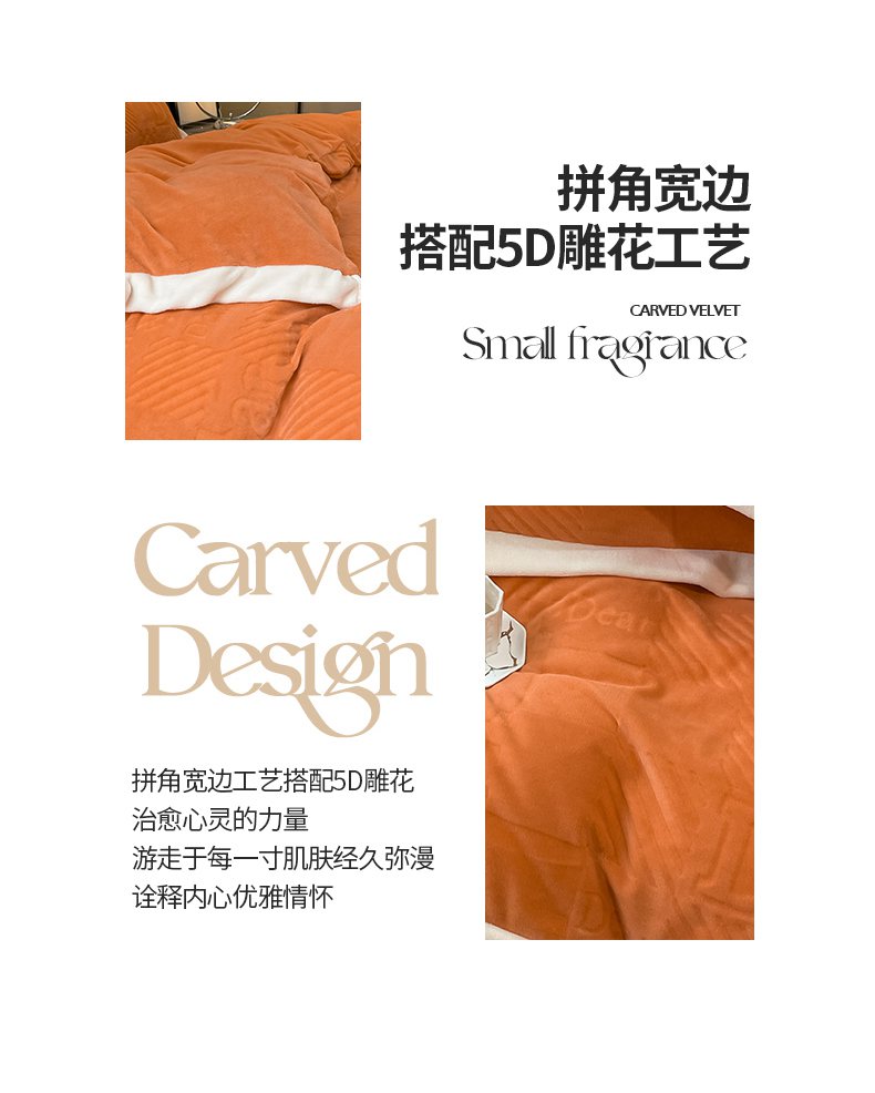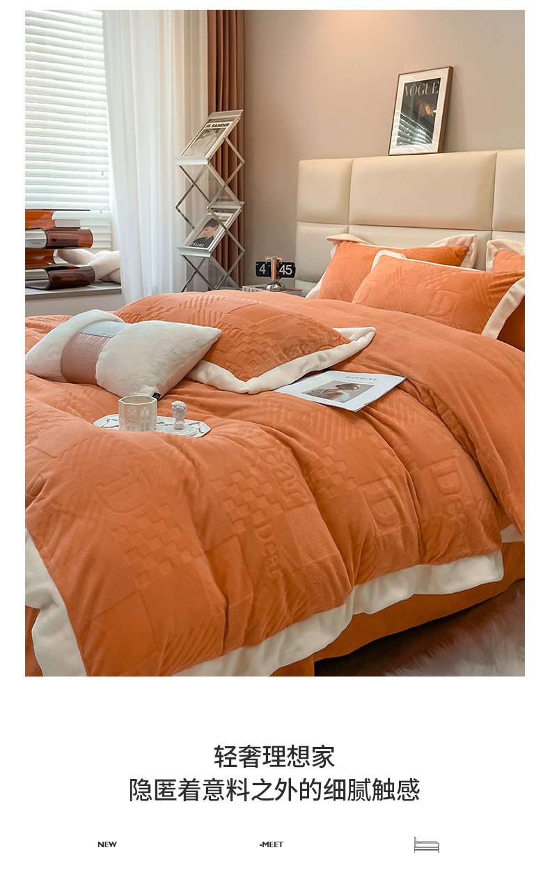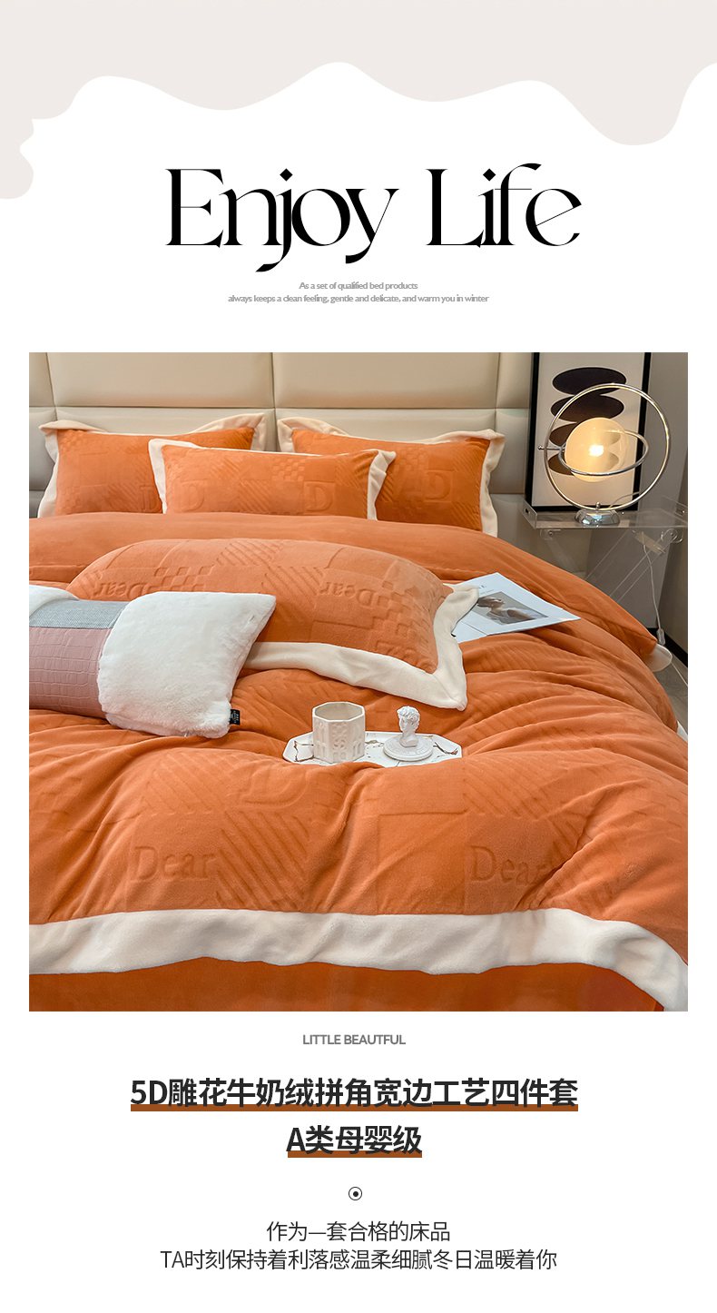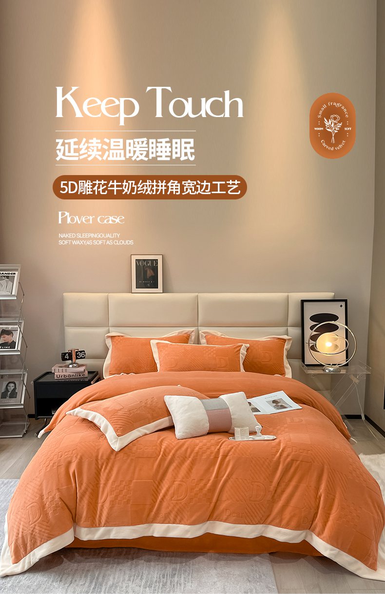 当前位置: 91家纺网 > 商品网购 > 床品套件 > 四件套 > 牛奶绒四件套 > 艾佳 2025新款5D雕花牛奶绒拼角宽边工艺四件套-唯爱系列 唯爱-爱玛橙