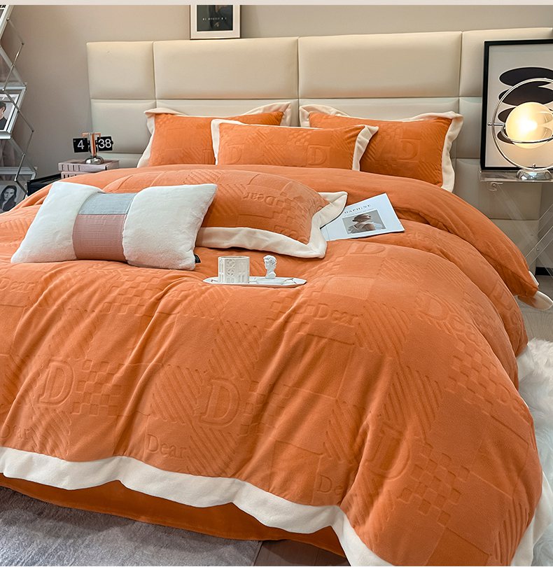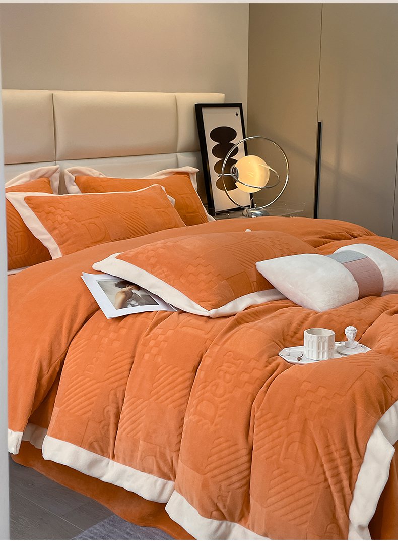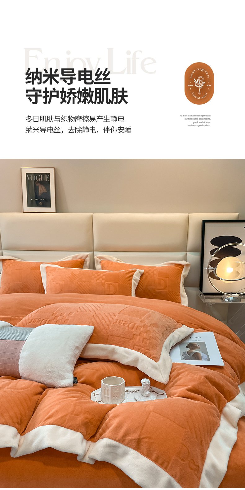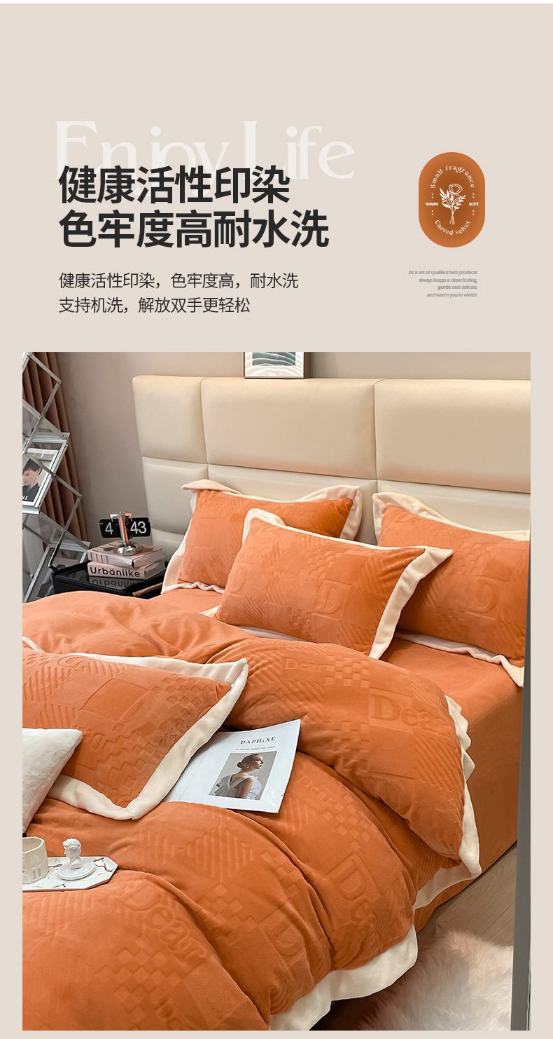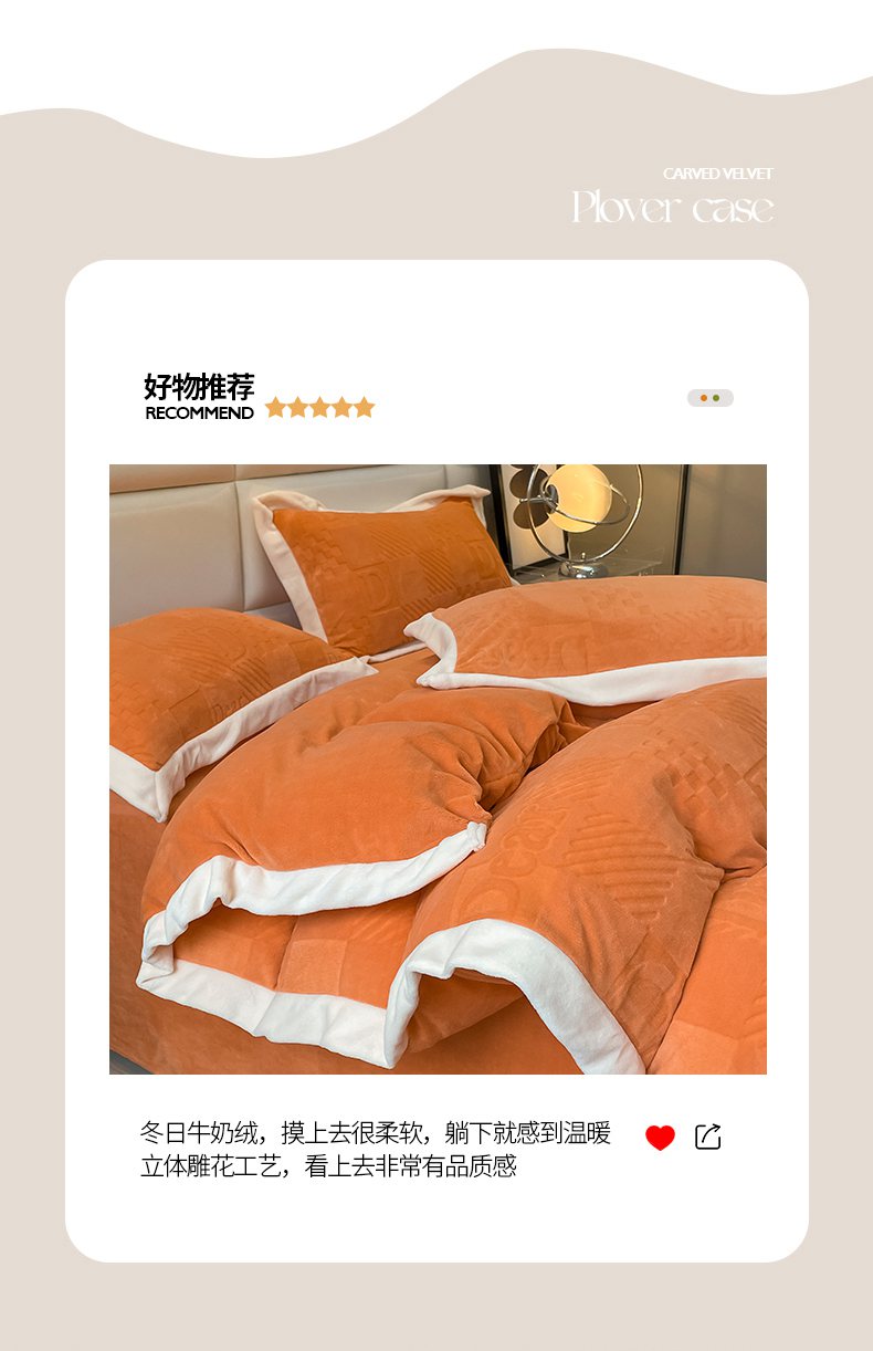 当前位置: 91家纺网 > 商品网购 > 床品套件 > 四件套 > 牛奶绒四件套 > 艾佳 2025新款5D雕花牛奶绒拼角宽边工艺四件套-唯爱系列 唯爱-爱玛橙