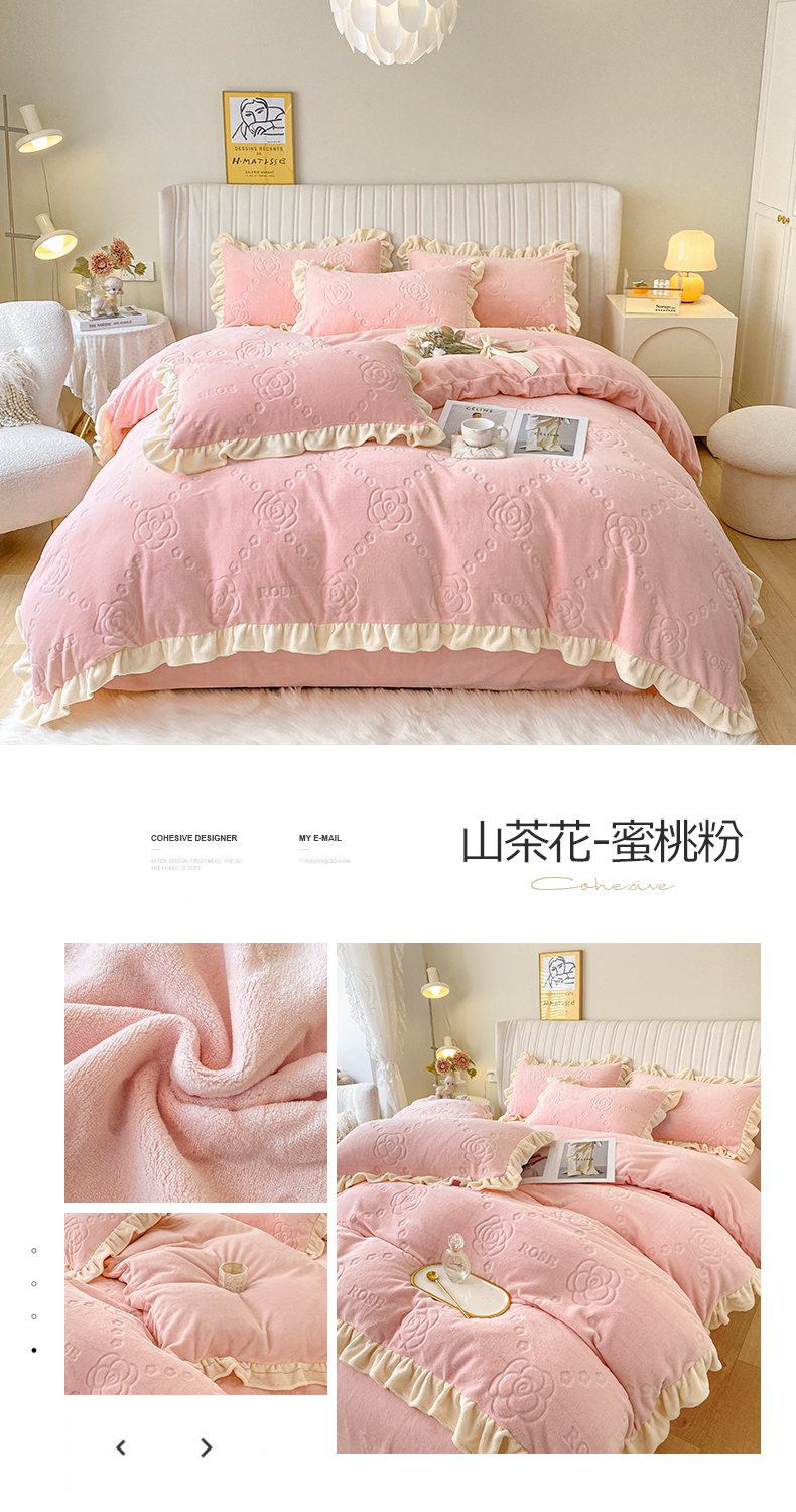 当前位置: 91家纺网 > 商品网购 > 床品套件 > 四件套 > 牛奶绒四件套 > 艾佳 2025新款高克重超柔牛奶绒婴儿绒雕花烂花四件套-山茶花系列 山茶花-韩版熏衣紫