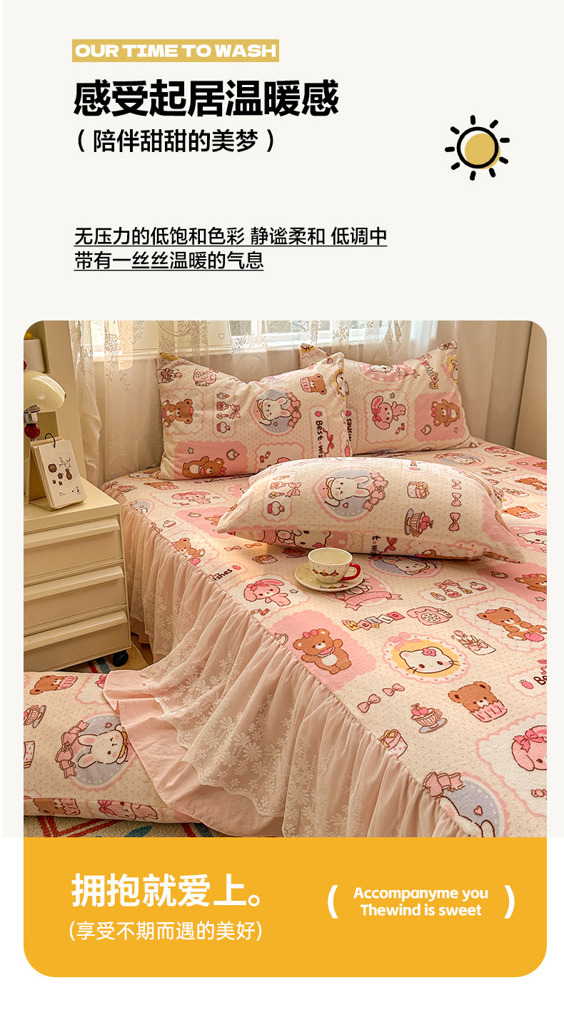 (总)老K (原美阁) 2025新款蕾丝床裙款牛奶绒三件套单品双层床裙牛奶绒