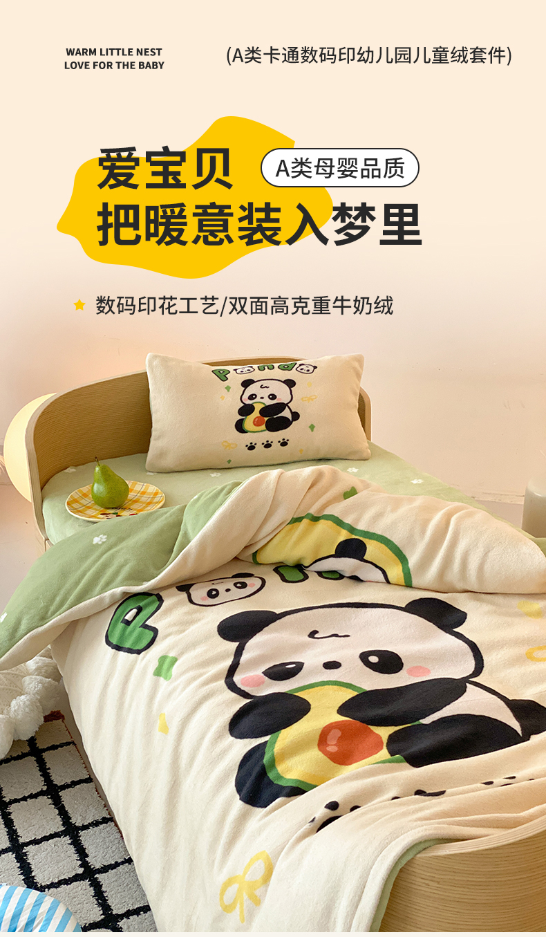 当前位置: 91家纺网 > 商品网购 > 床品套件 > 多件套 > 多件套 > 宝贝优选 2025新款A类卡通数码印幼儿园儿童牛奶绒套件 胖墩国宝