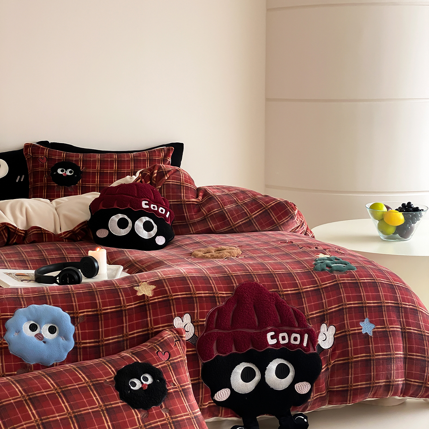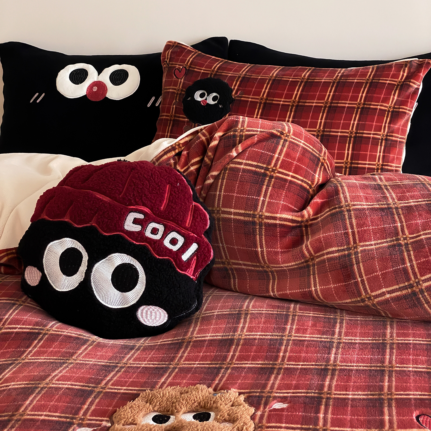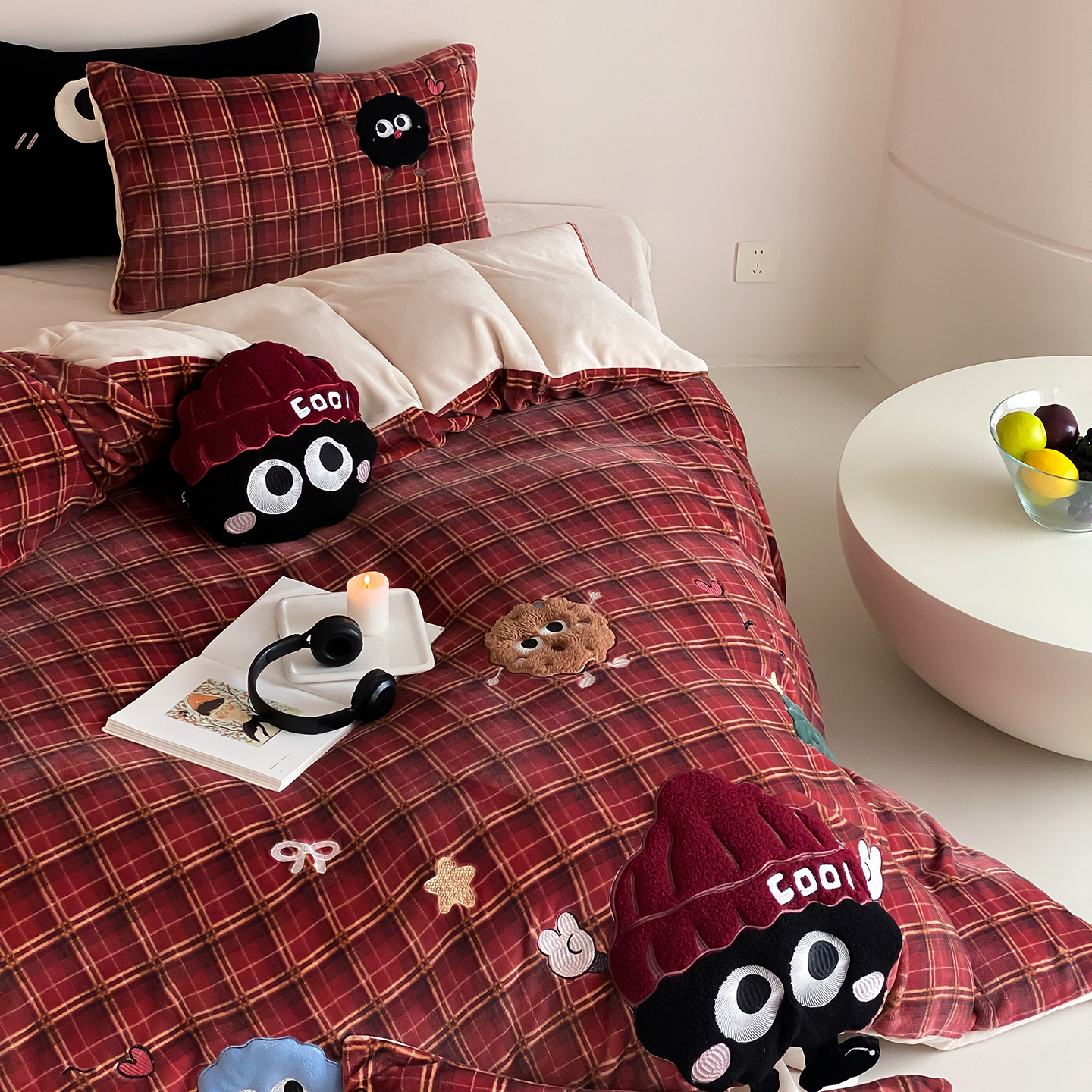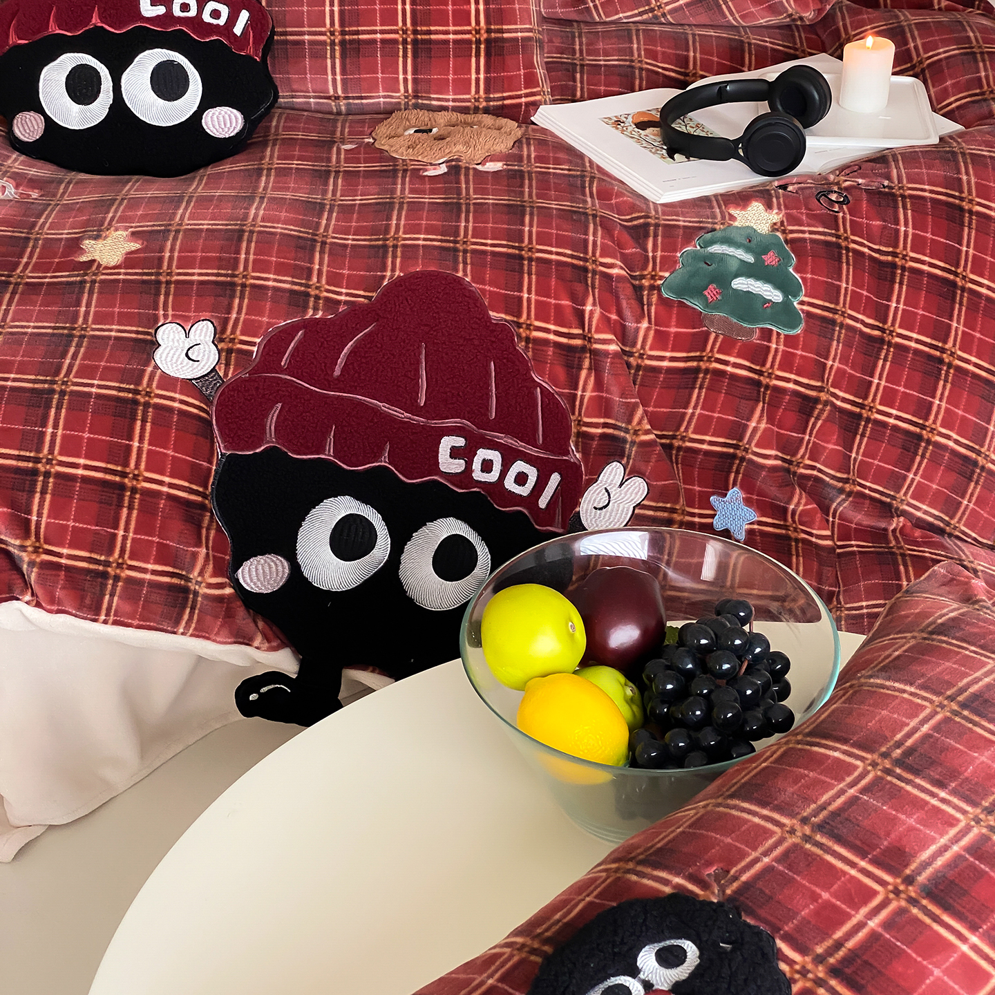 商品名称:(总)星野 2025新款高克重牛奶绒贴布绣刺绣四件套-黑巧豆(商家控价券后:298/328/348)