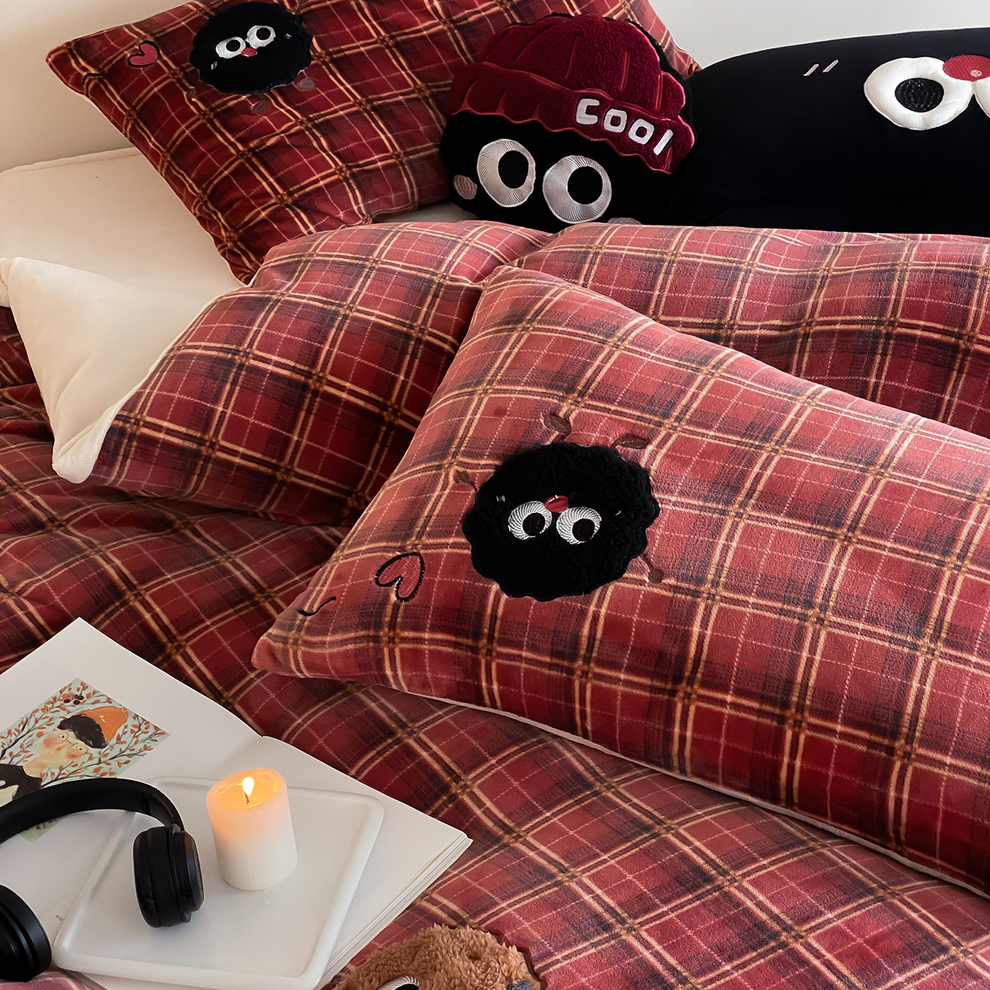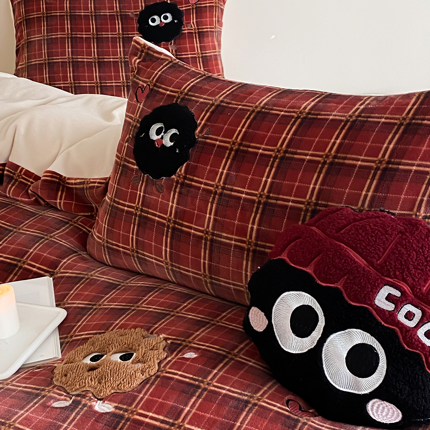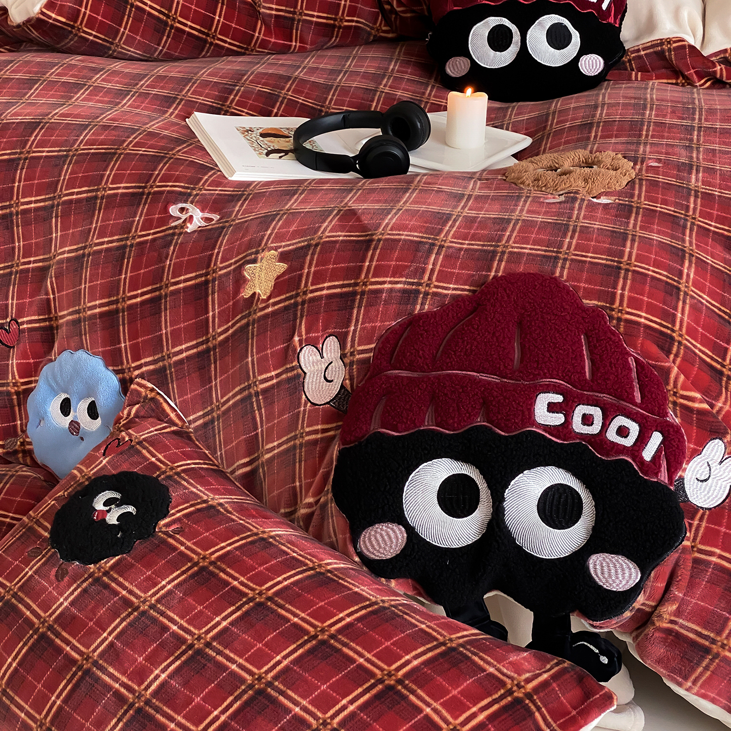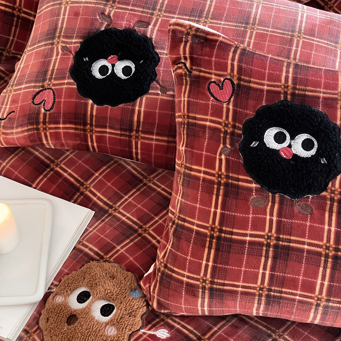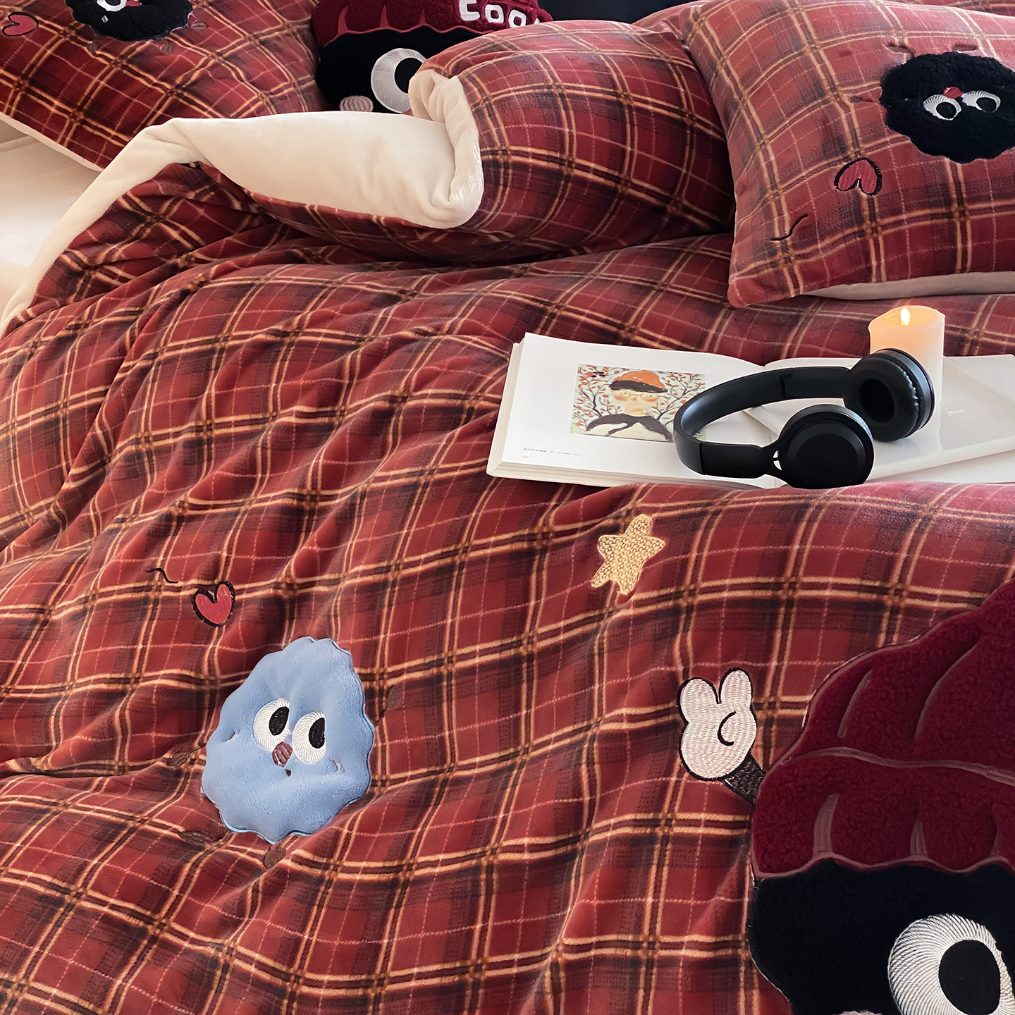 (总)星野 2025新款高克重牛奶绒贴布绣刺绣四件套-黑巧豆(商家控价券后:298/328/348)
