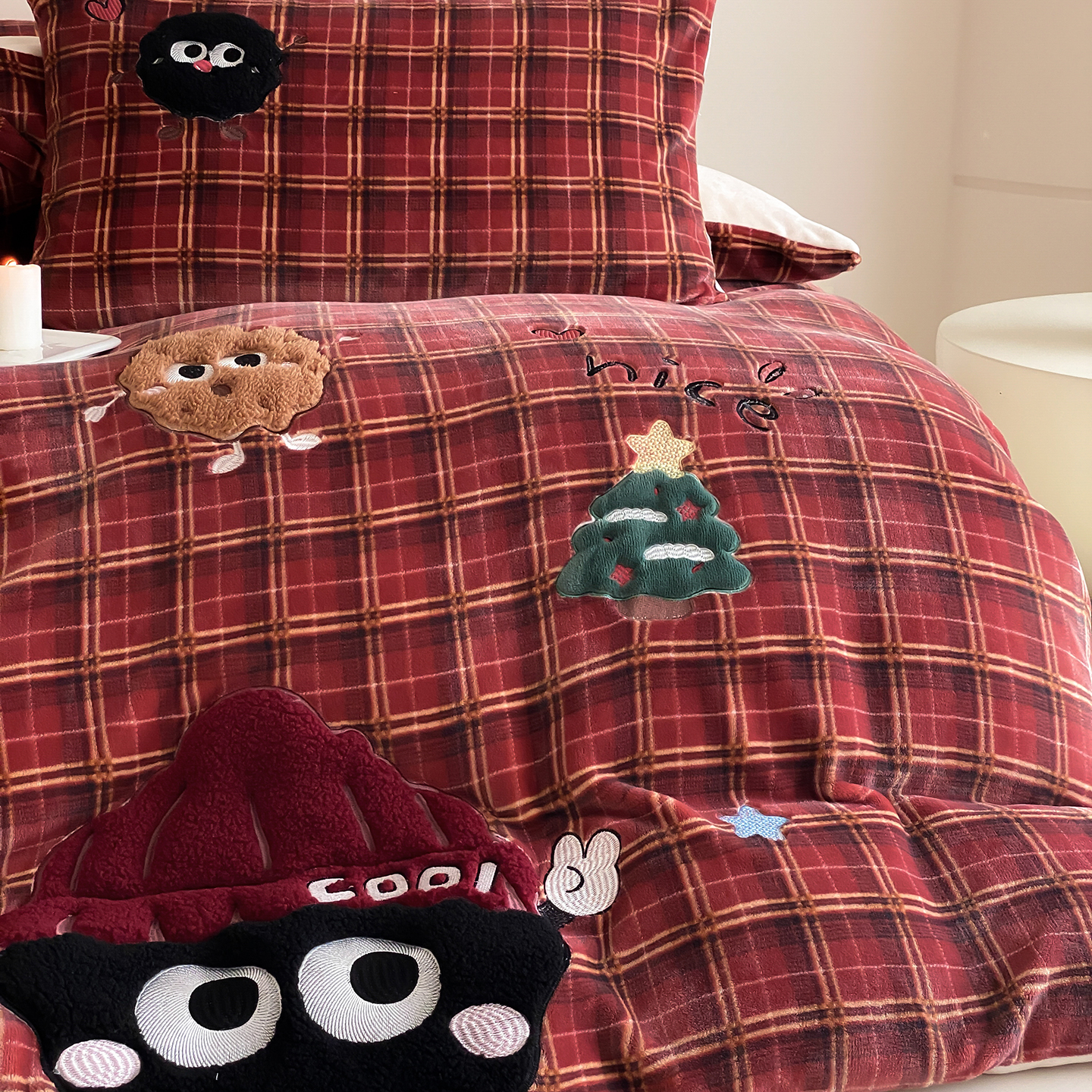 (总)星野 2025秋冬新品高克重牛奶绒毛巾绣卡通四件套-圣诞童话(商家控价券后:288/318/338),圣诞童话