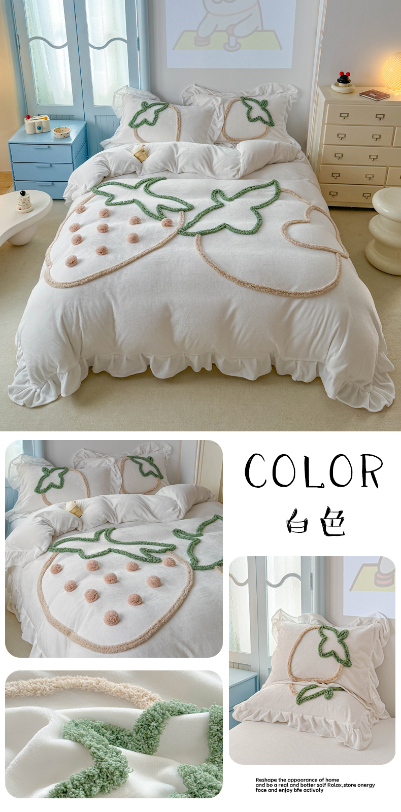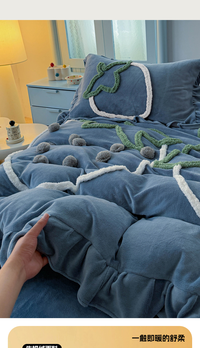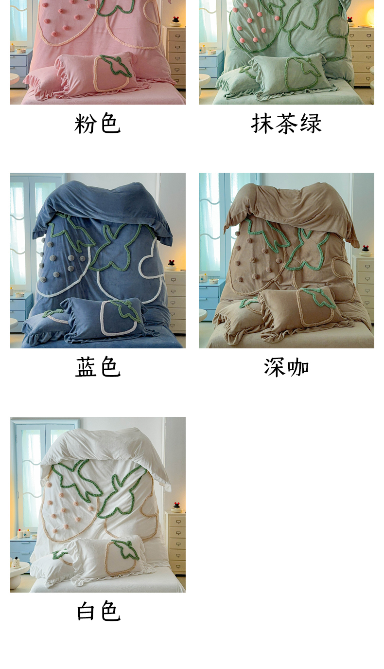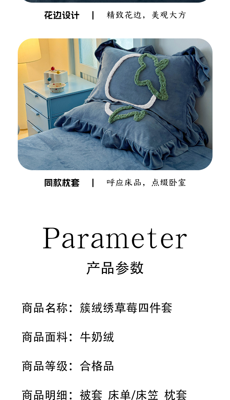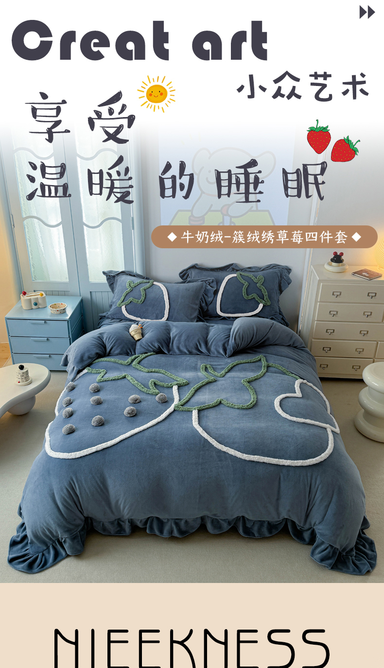 当前位置: 91家纺网 > 商品网购 > 床品套件 > 四件套 > 牛奶绒四件套 > 缘生活 2025新款牛奶绒-簇绒绣草莓四件套 簇绒绣草莓-蓝色
