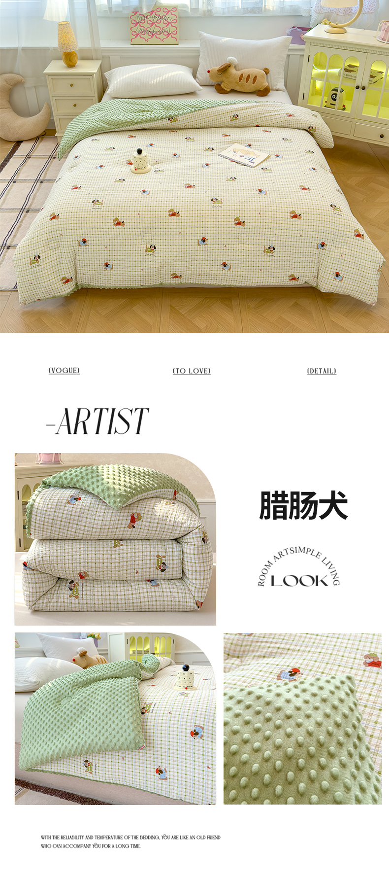 (总)好梦来家纺(原锦茂家纺) 2025新款水洗高克重双层纱豆豆被子加厚保暖被芯春秋被冬被,波点世界,蝴蝶结,叶叶相恋,小女孩,蔷薇之恋-紫,蔷薇之恋-绿,奇幻之旅,美乐蒂,腊肠狗,灰豹纹,秘境,格子熊