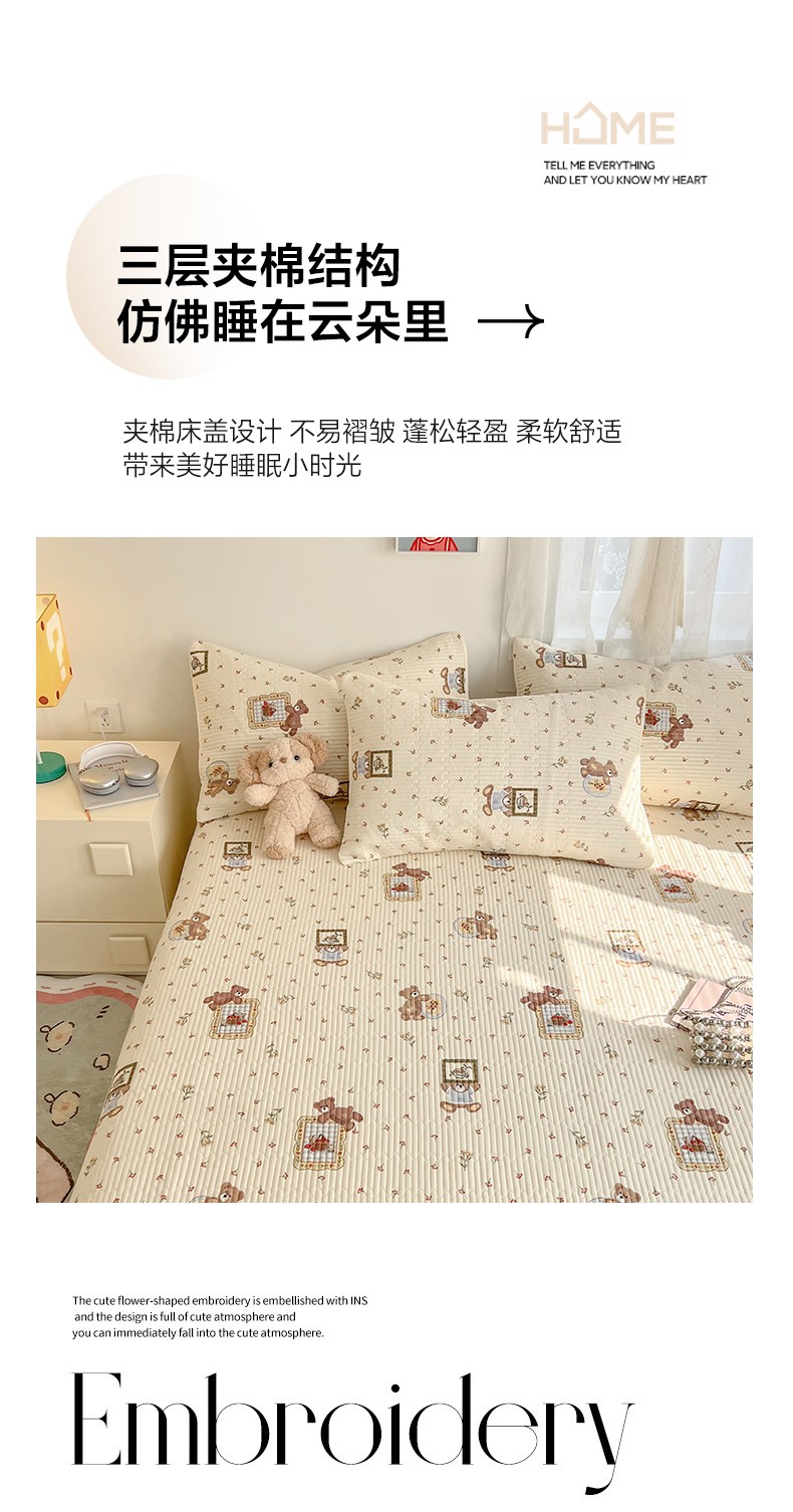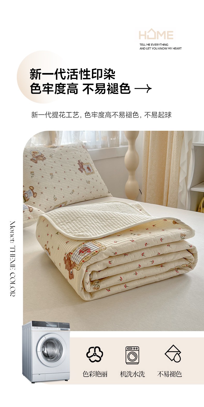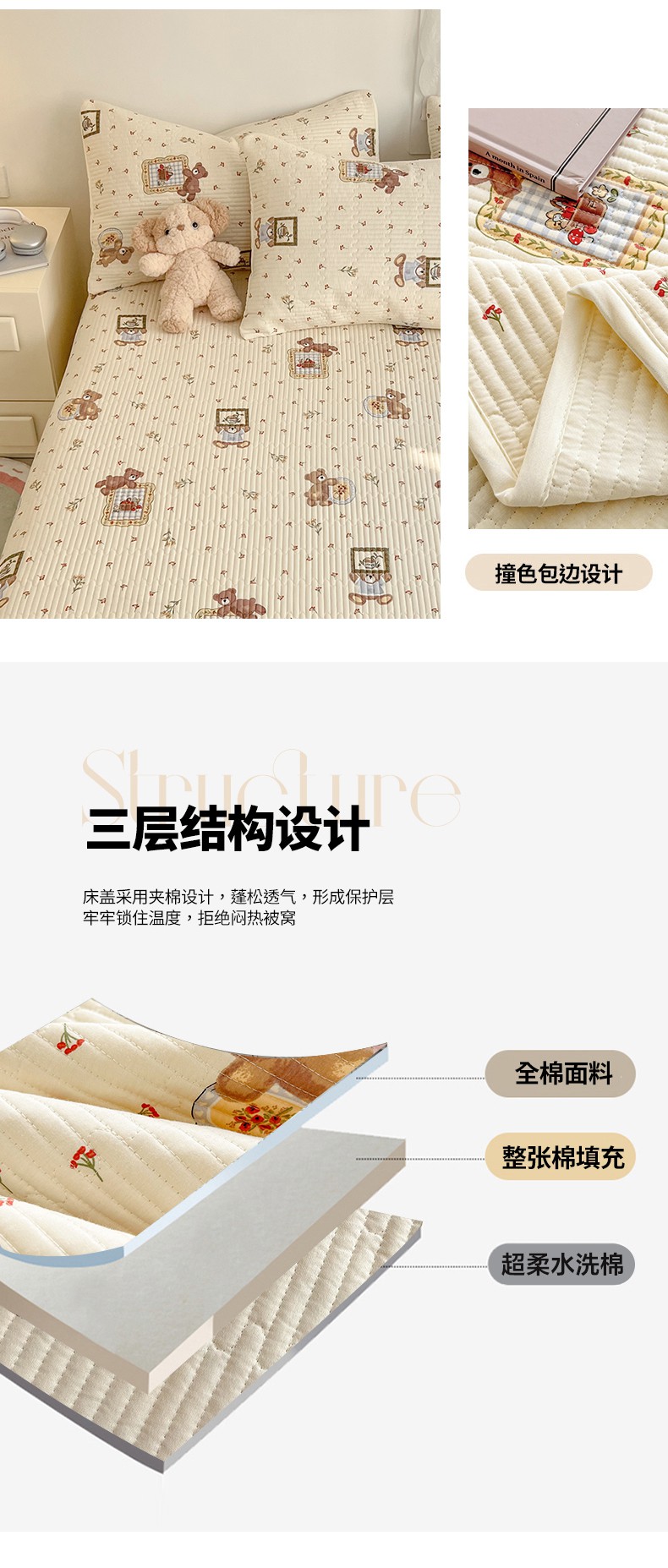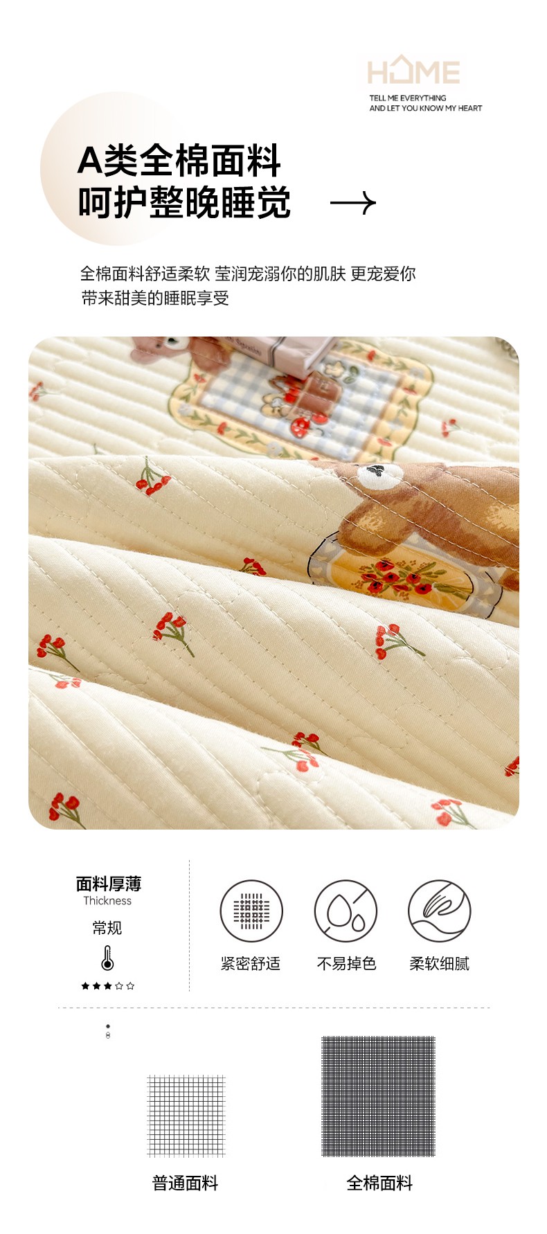 • 91家纺网 家纺一手货源 找家纺 妮可 2025新款热款花型印花全棉夹棉多功能床垫-床盖 拍照小熊