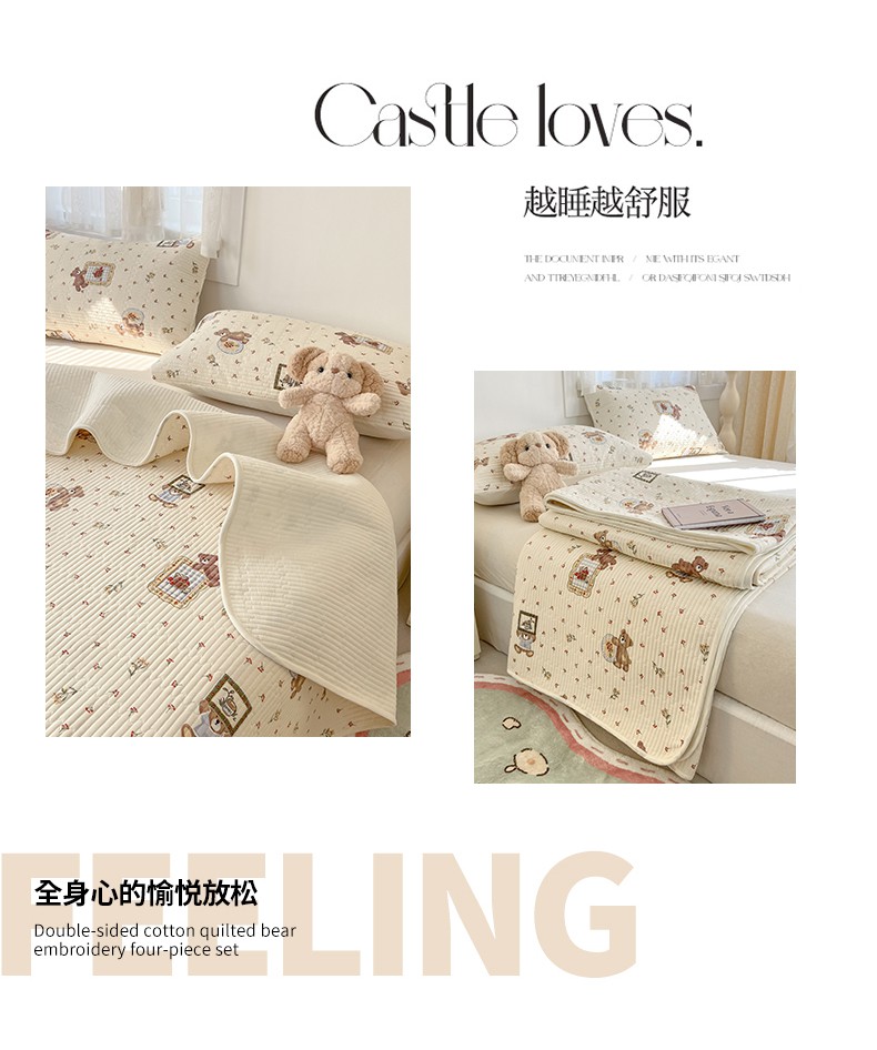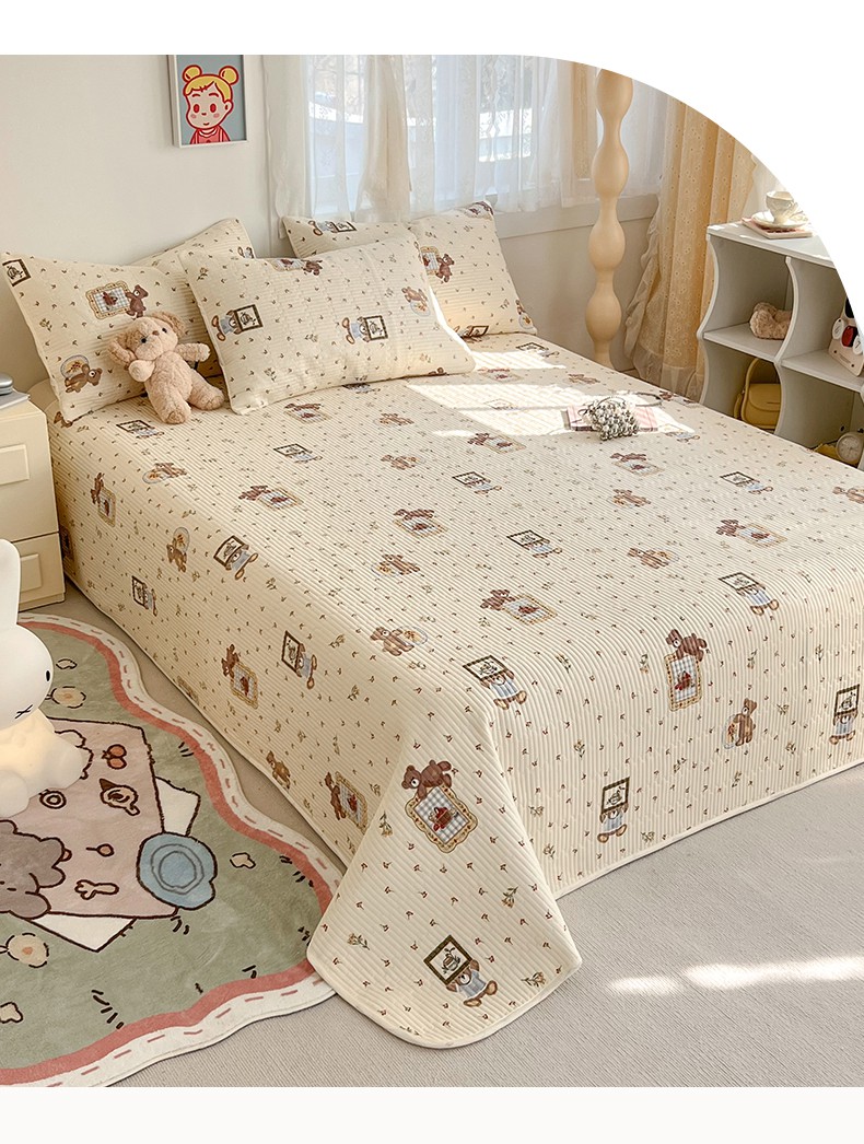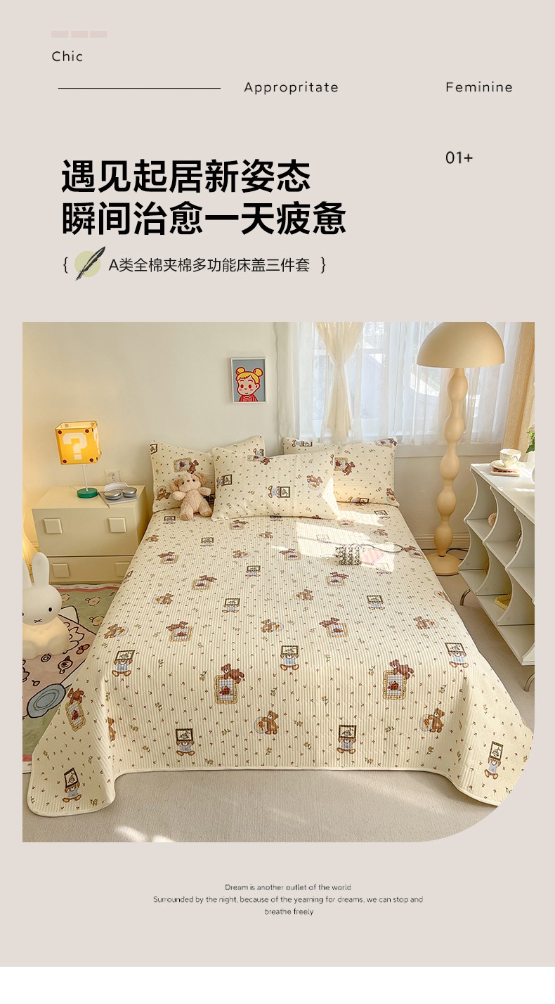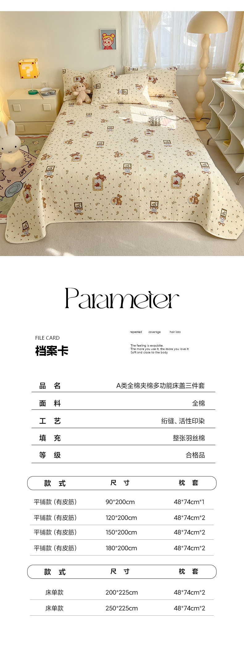 • 91家纺网 家纺一手货源 找家纺 妮可 2025新款热款花型印花全棉夹棉多功能床垫-床盖 拍照小熊