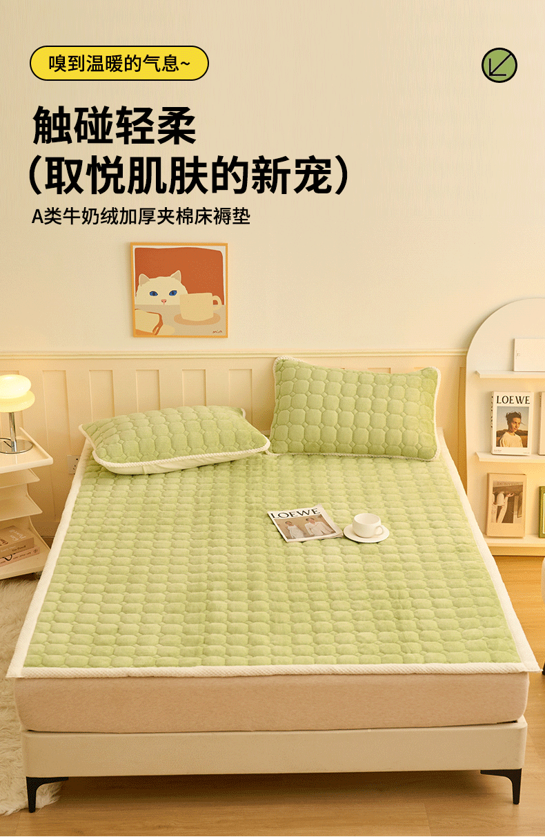 当前位置: 91家纺网 > 商品网购 > 床垫/床褥 > 普通床垫 > 缦吉 2025冬季新款亲肤舒适简约牛奶绒床垫床褥子 果绿