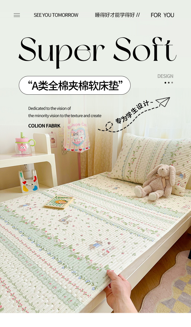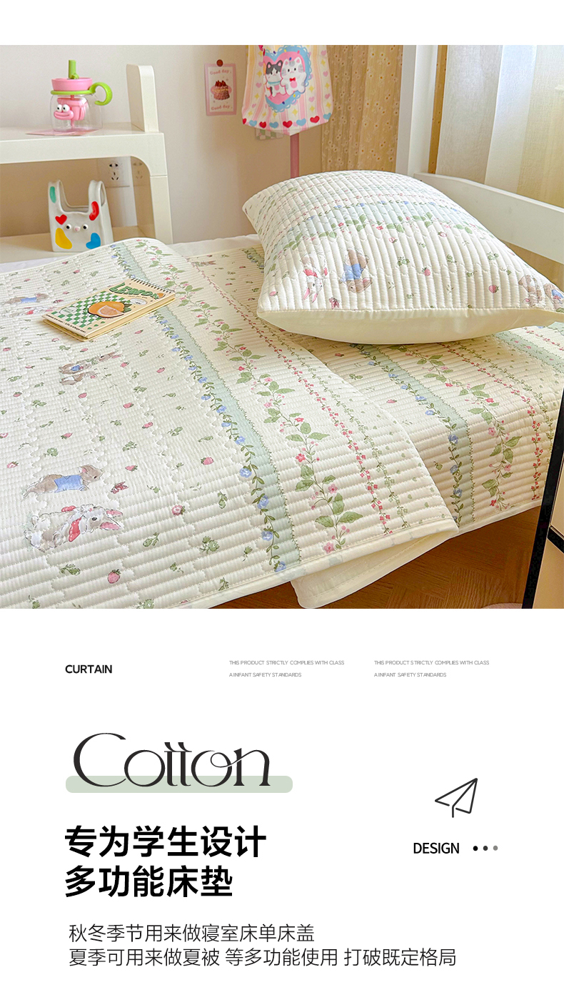 当前位置: 91家纺网 > 商品网购 > 床垫/床褥 > 普通床垫 > 妮可 2025热款学生床全棉夹棉多功能床垫-床盖 草莓小兔