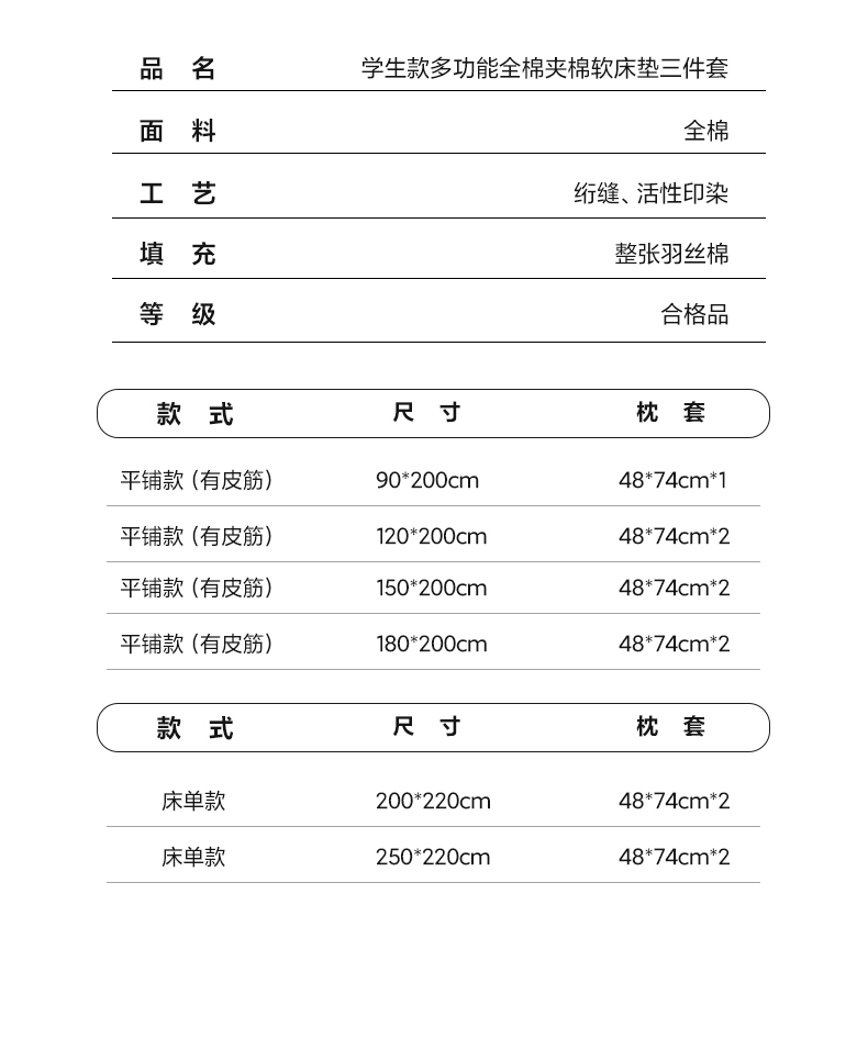 1.5*2.0m 平铺款有皮筋 | ¥50.00 |