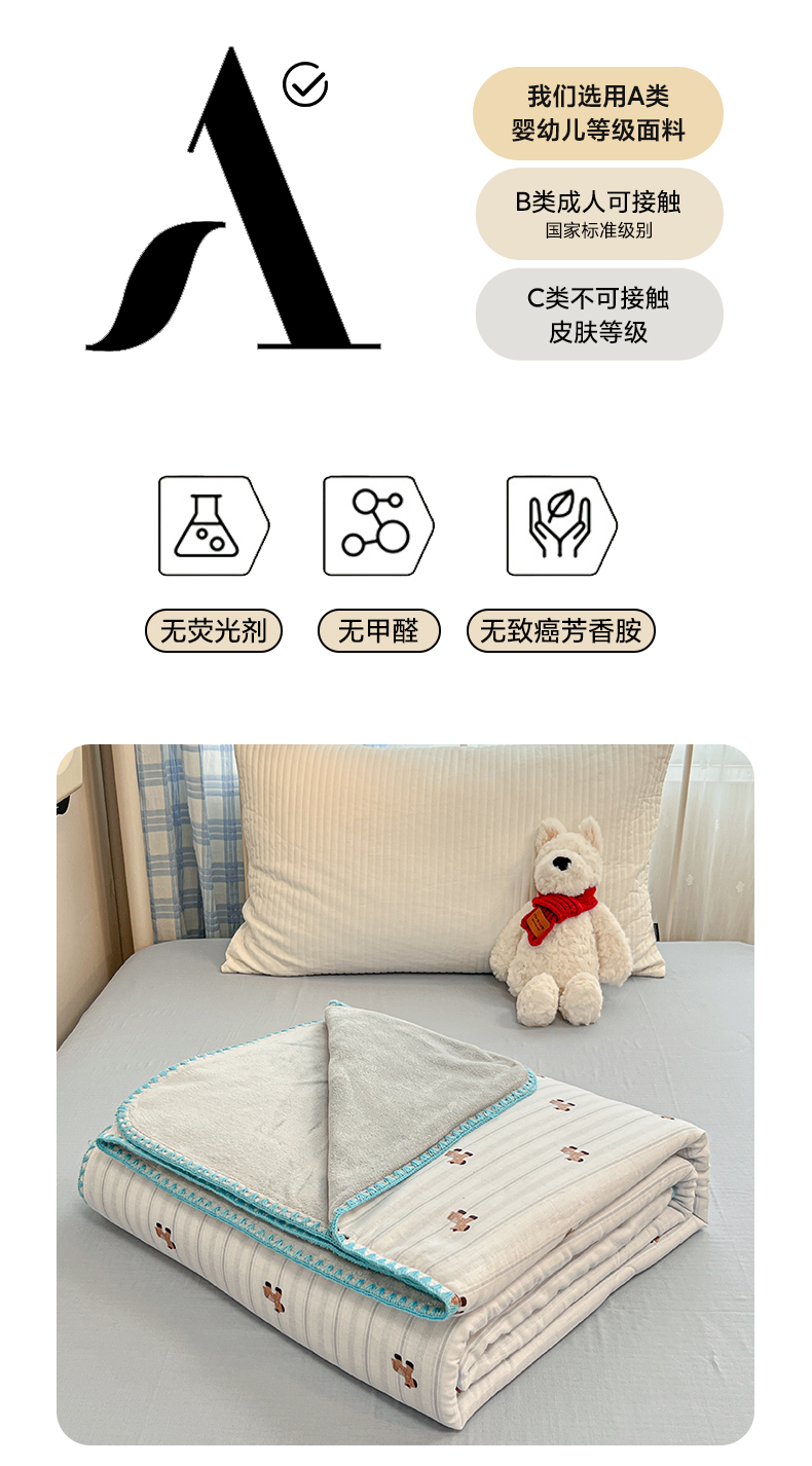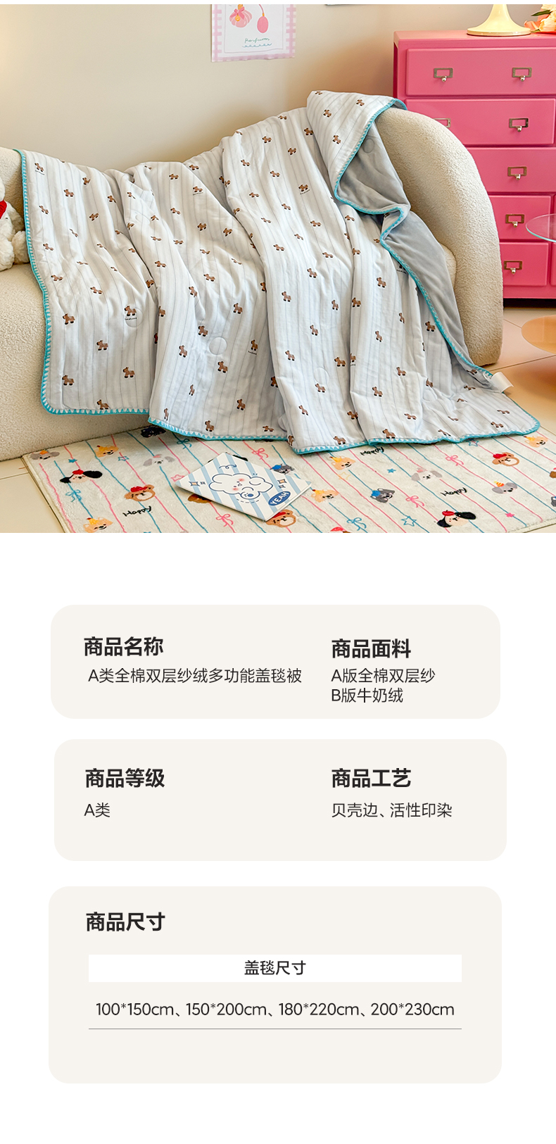 (总)妮可 2025新款跑量款全棉双层纱绒四季可用床盖系列,元气萌宠,花园兔宝,蓝汪拾趣,暖阳熊仔,甜梦凯蒂,甜心乐园,芋泥奶霜,组合图(仅参考)