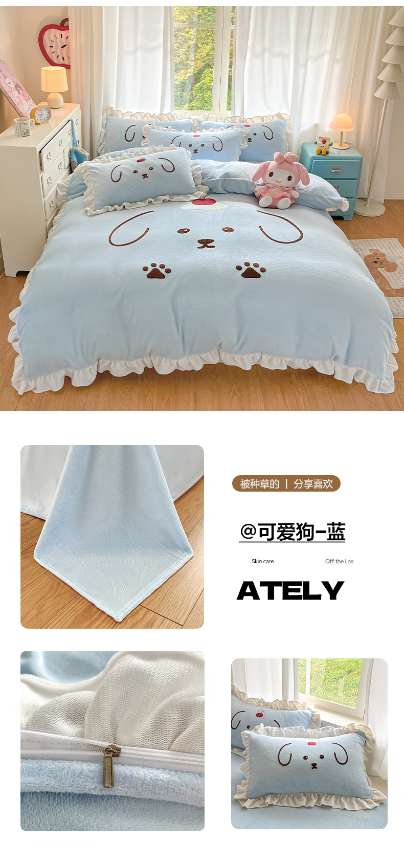 当前位置: 91家纺网 > 商品网购 > 床品套件 > 四件套 > 牛奶绒四件套 > 梦之岛 2025新款高克重大版牛奶绒卡通毛巾绣四件套 可爱狗-蓝