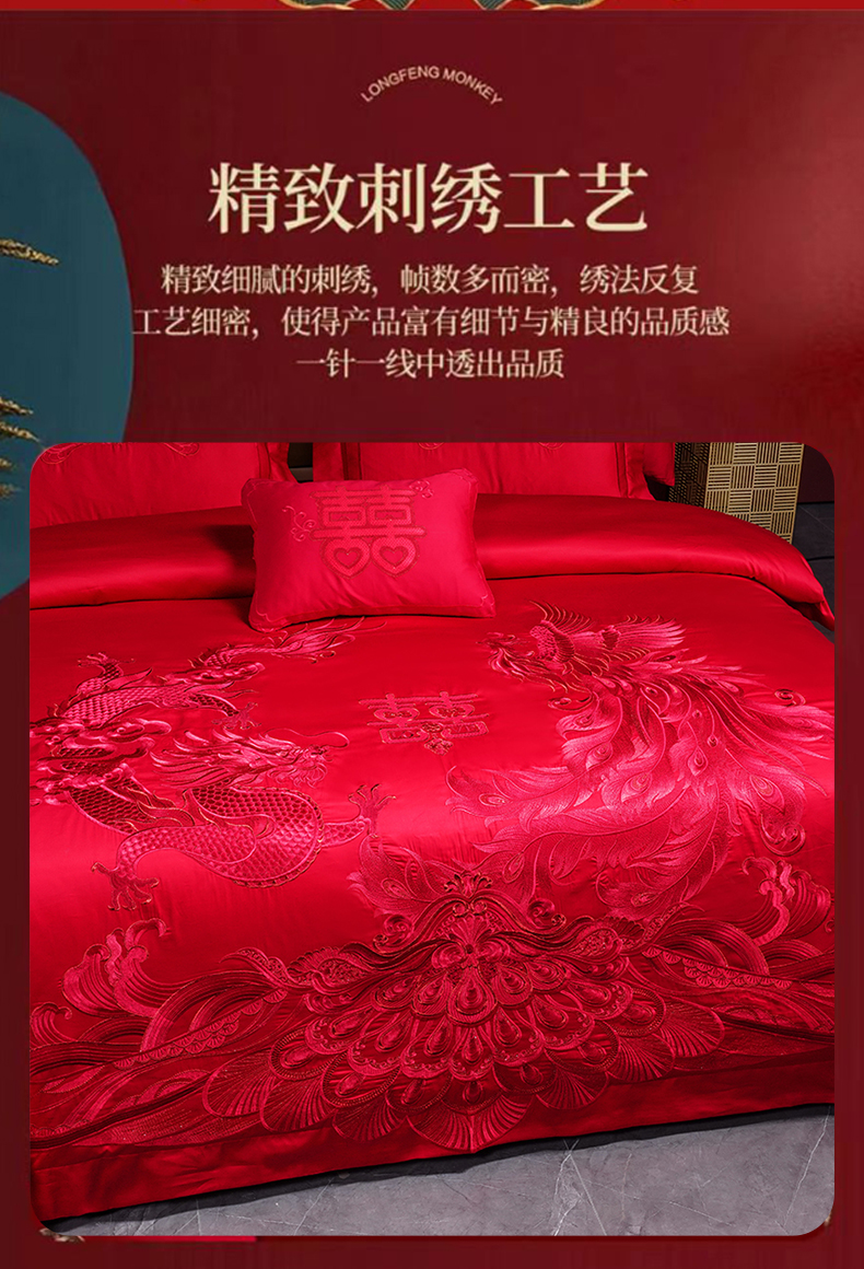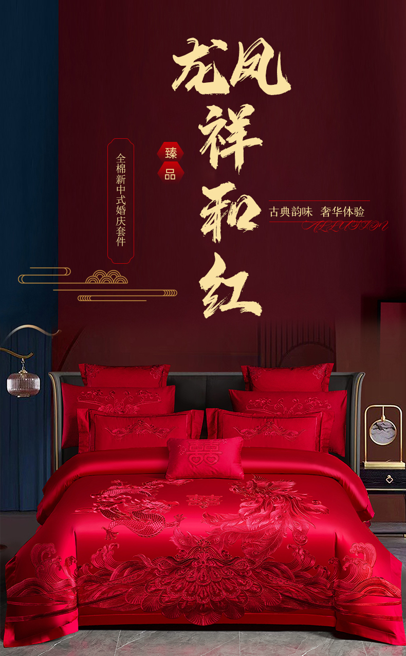 当前位置: 91家纺网 > 商品网购 > 床品套件 > 四件套 > 婚庆四件套 > 博之洋婚庆 2025新款全棉新中式刺绣款婚庆四件套多件套 龙凤祥和-红