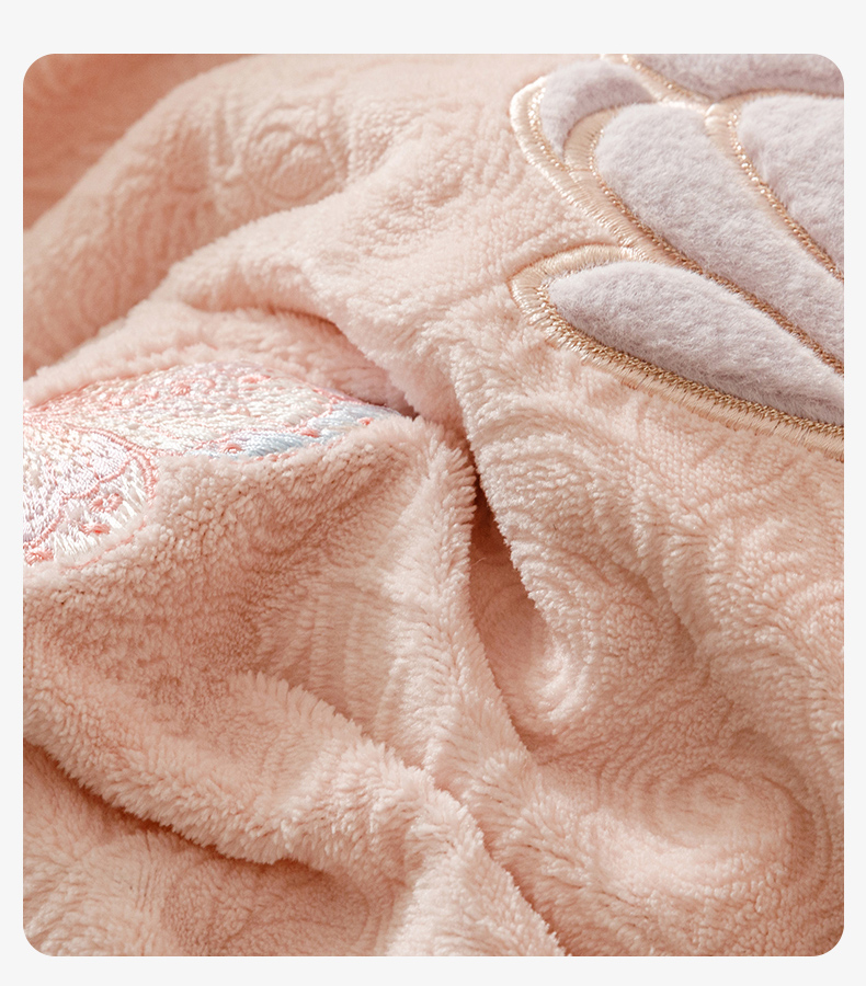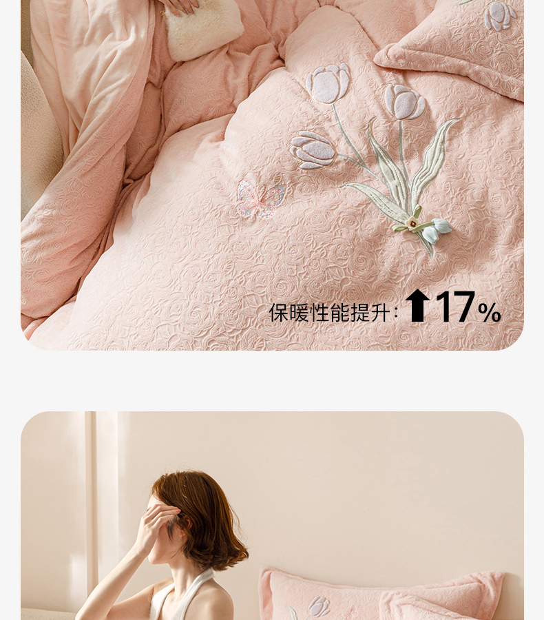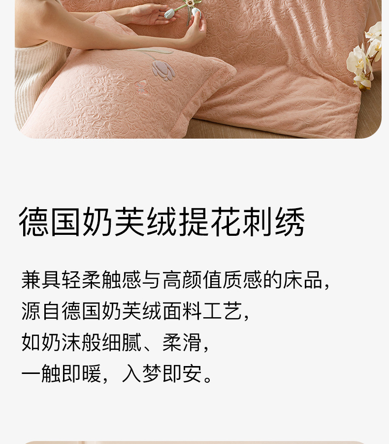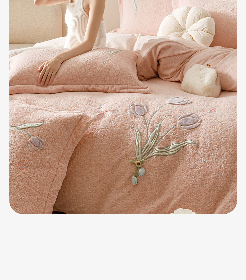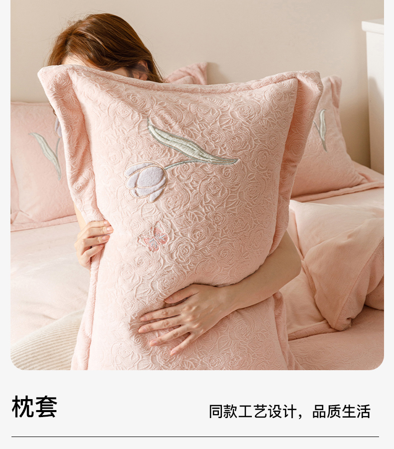 商品名称:卡姿家纺 2025秋冬德国奶芙绒提花刺绣— 元气郁金香 元气郁金香-粉