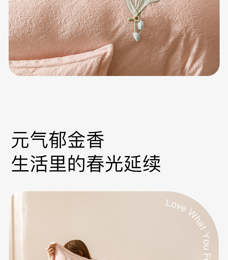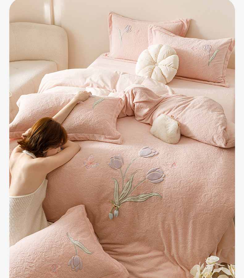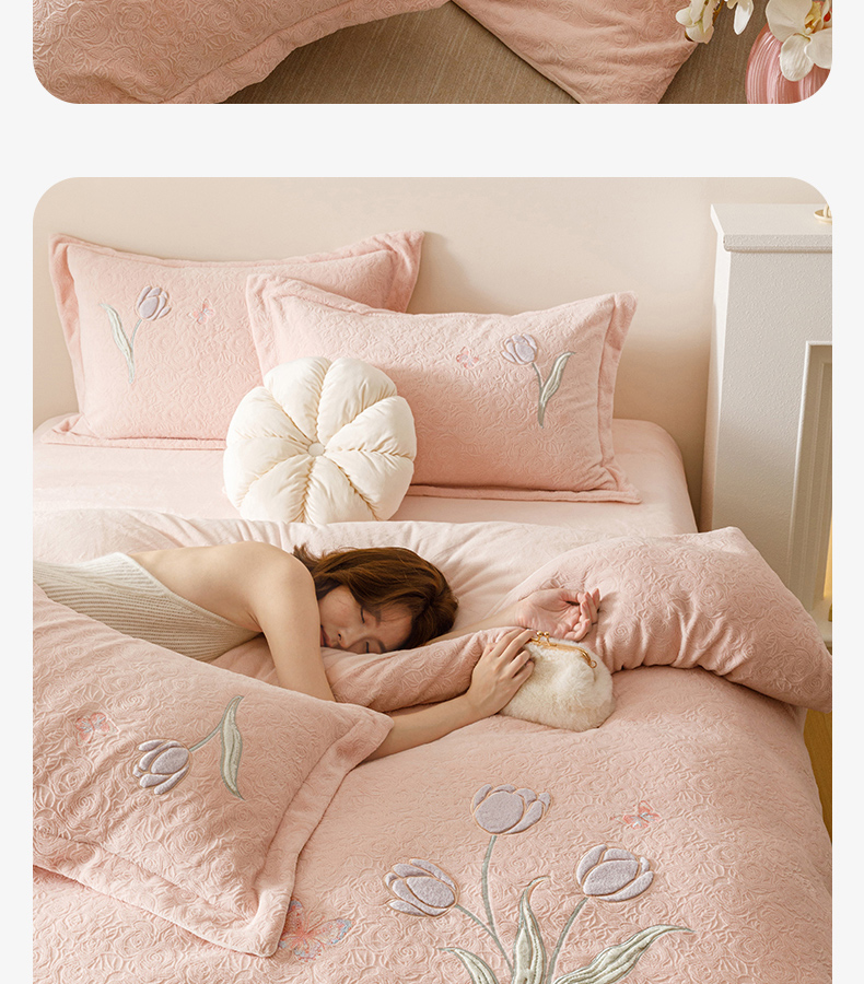 卡姿家纺 2025秋冬德国奶芙绒提花刺绣— 元气郁金香 元气郁金香-粉
