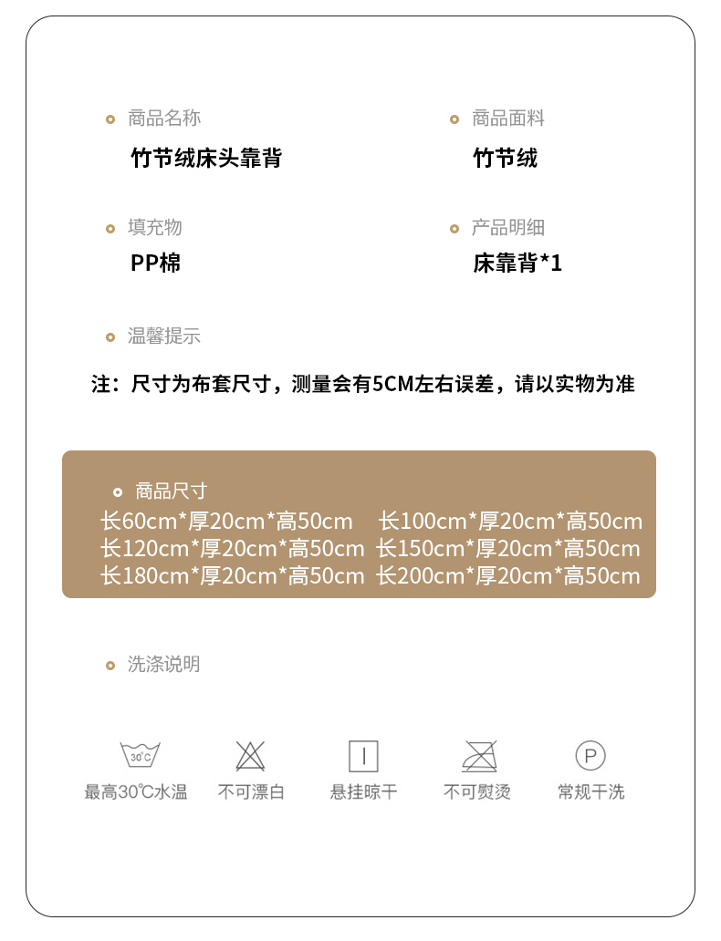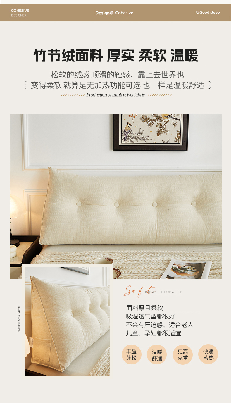 商品名称:艺菲阁家纺 2025新款竹节绒床头靠背 奶油白
