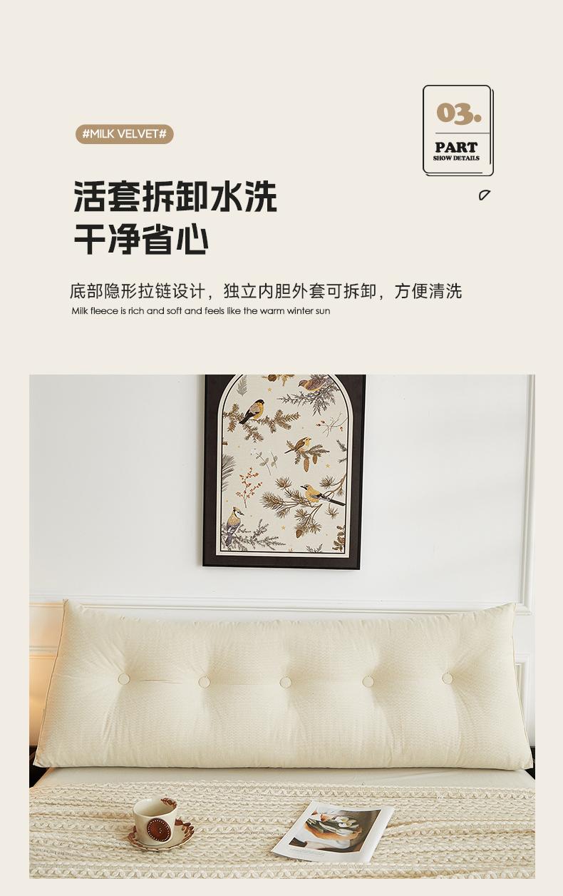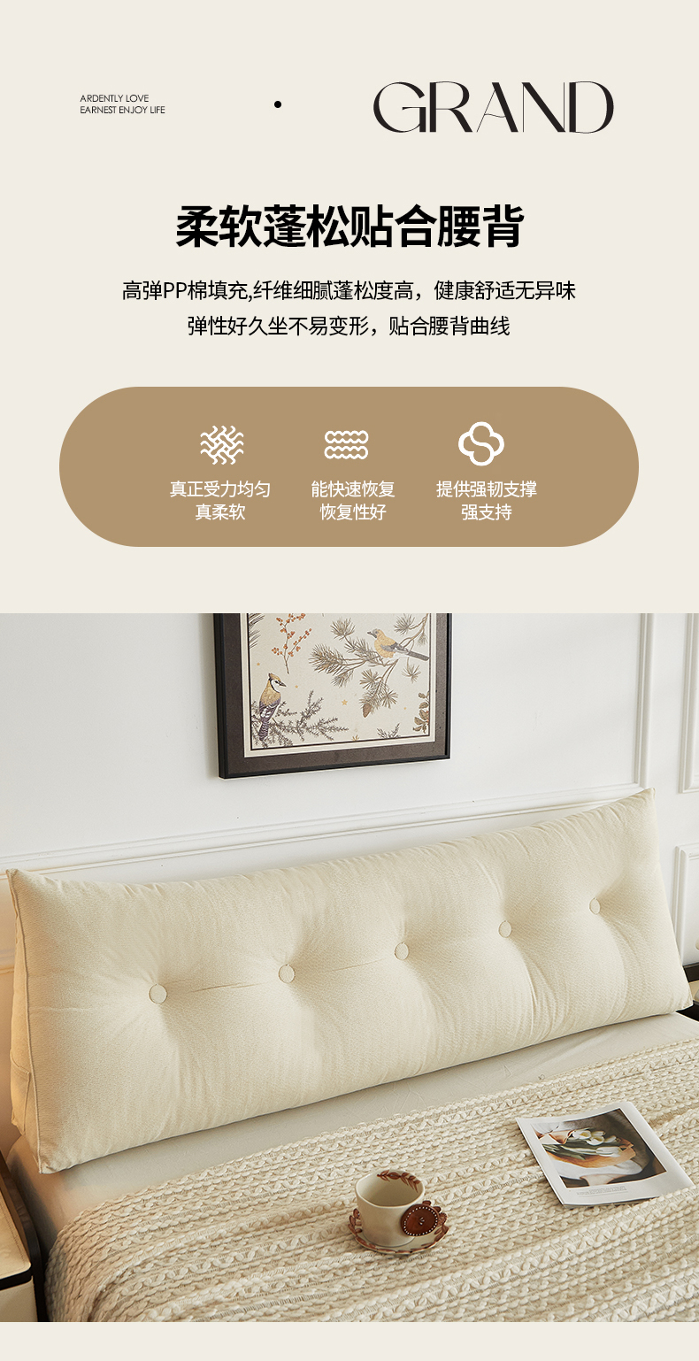 艺菲阁家纺 2025新款竹节绒床头靠背 奶油白