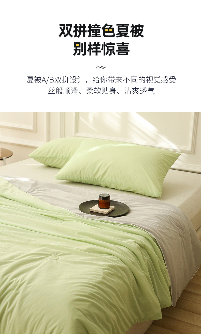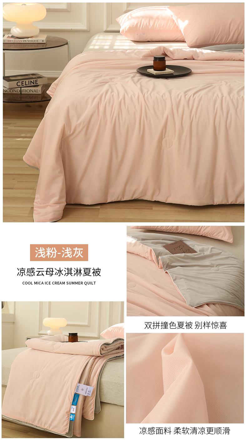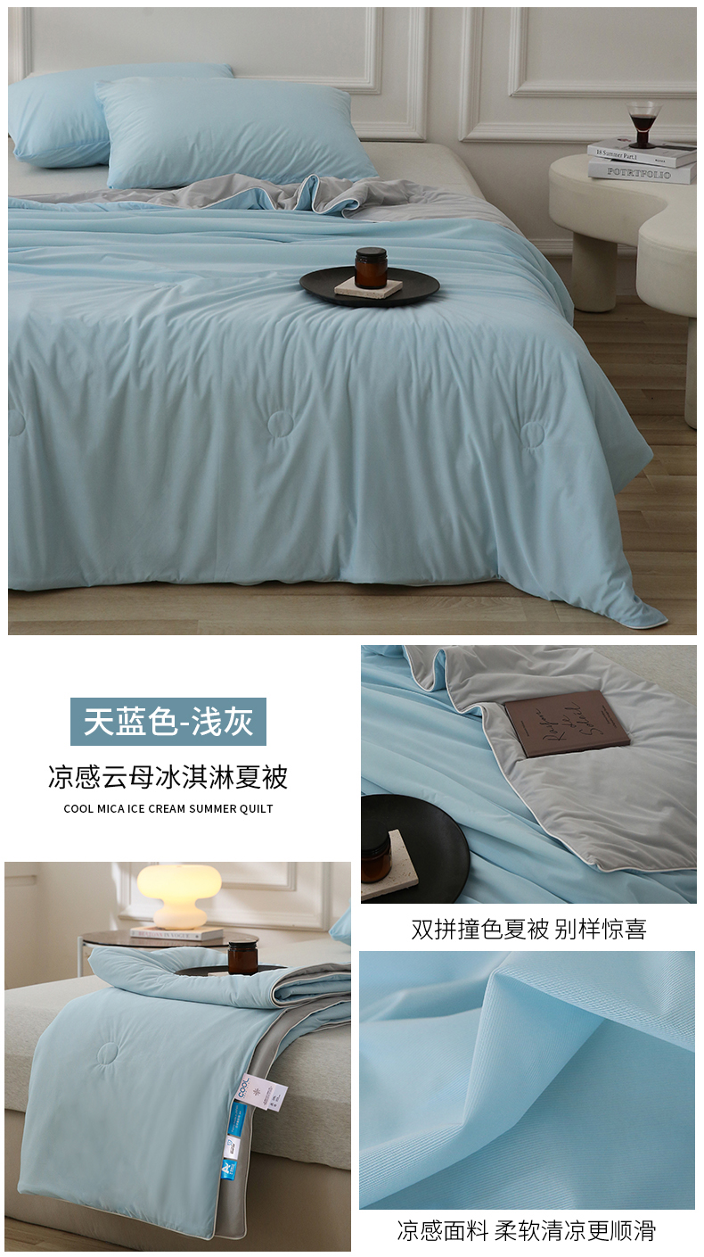 (总)缦绣阁家纺 2025春夏新款纯色双拼凉感丝夏被冰淇淋夏被夏凉被空调被被子被芯跨境外贸爆款,灰色,绿拼粉,绿拼灰,浅蓝拼粉,浅蓝拼灰,玉拼灰