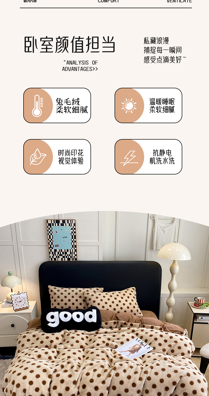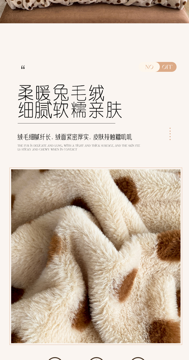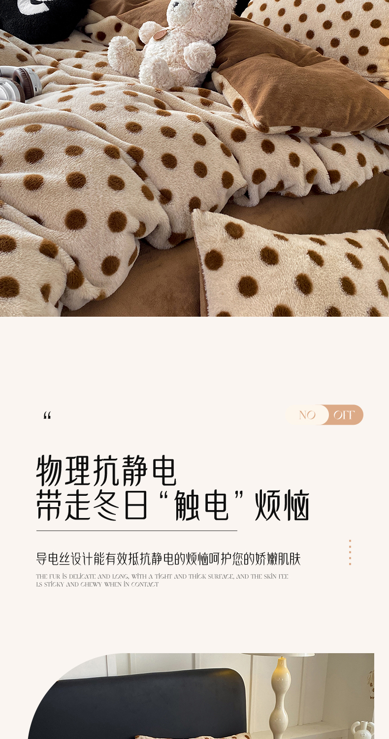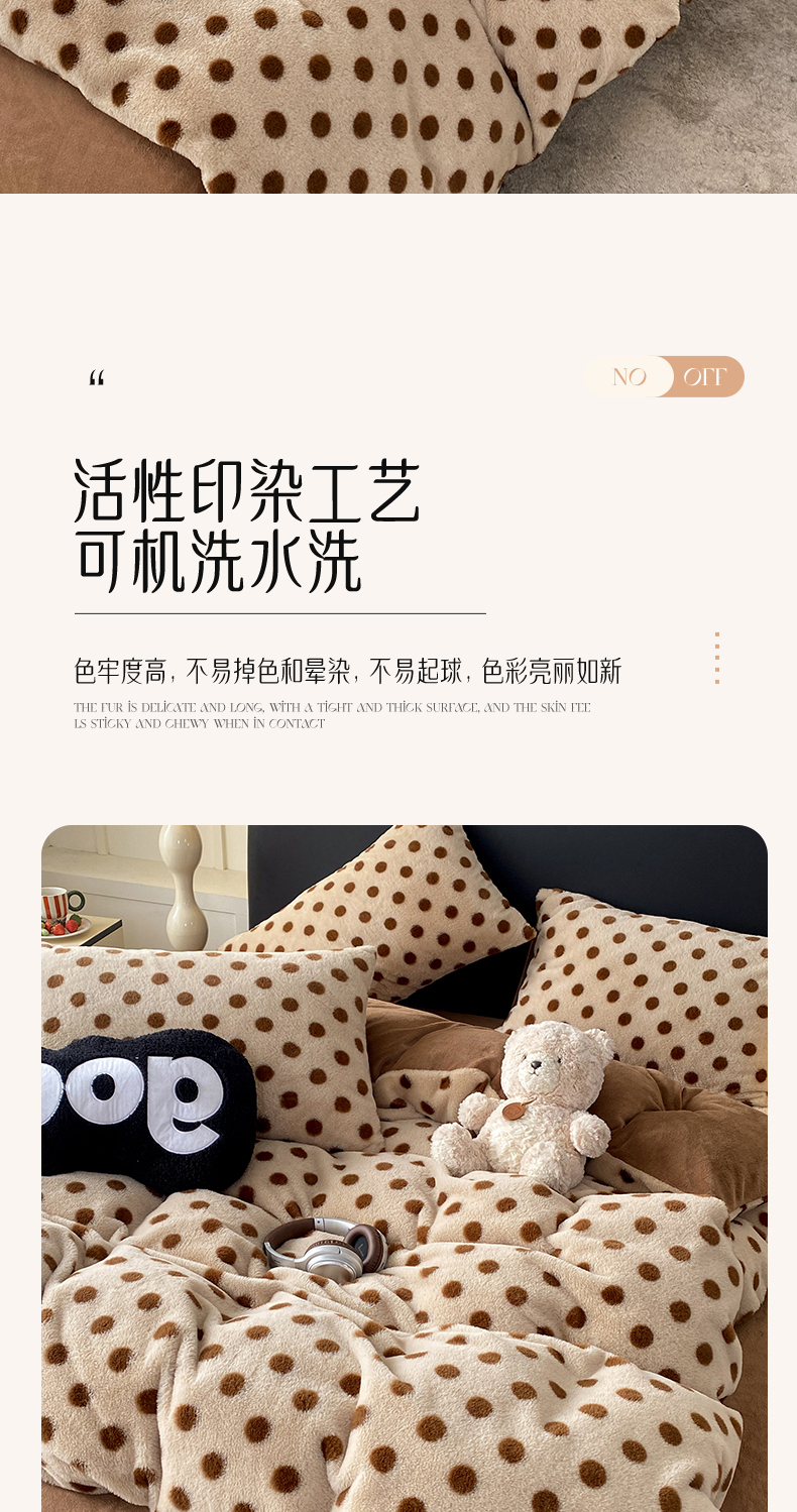 商品名称:蝶帕家纺 2025新款兔毛绒印花四件套 波点咖