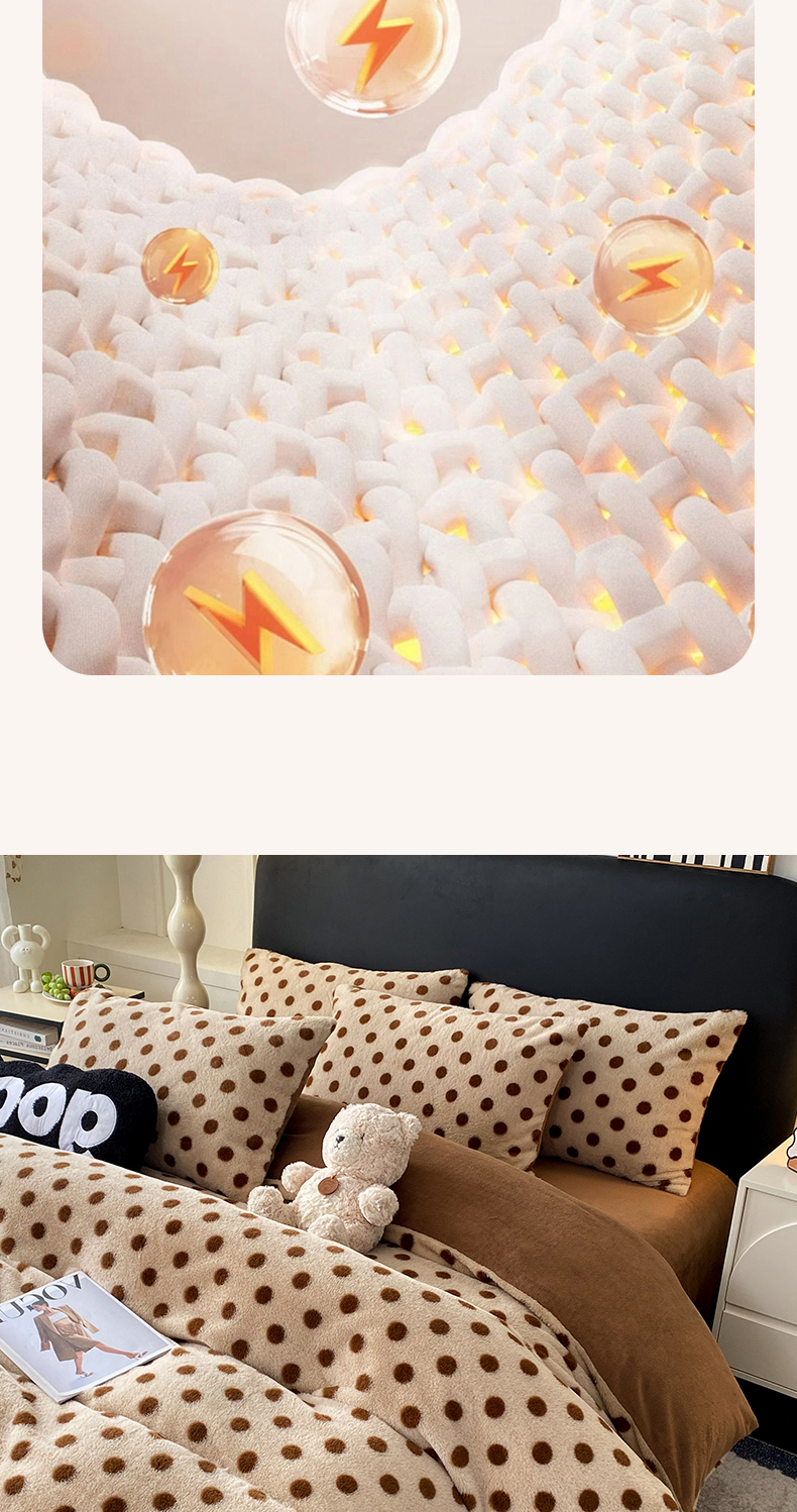 蝶帕家纺 2025新款兔毛绒印花四件套 波点咖